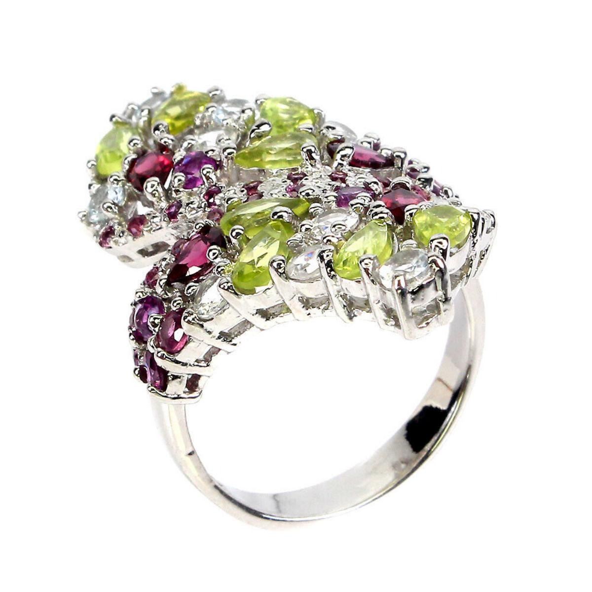 925 STERLING SILVER;PLATE-14K WHITE GOLD;RING SIZE-8(RESIZABLE);MAIN STONE-PERIDOT;OTHER GEMS-AQUAMARINE, RHODOLITE GARNET;TOTAL WEIGHT-7.41 GRAM (TOTAL WEIGHT OF SILVER + STONE);DIMENSION-* STONE 1.5 TO 5.0 X 3.0 MM.* RING SIZE 8.0* FACE RING 34.0 X 25.0 MM.;MAIN STONE SHAPE-PEAR ;MAIN STONE COLOR- GREEN;CLARITY/GRADE-IF TO VVS;TREATMENT-UNHEATED;ORIGIN-PAKISTAN;HARDNESS-6.5 - 7.0;