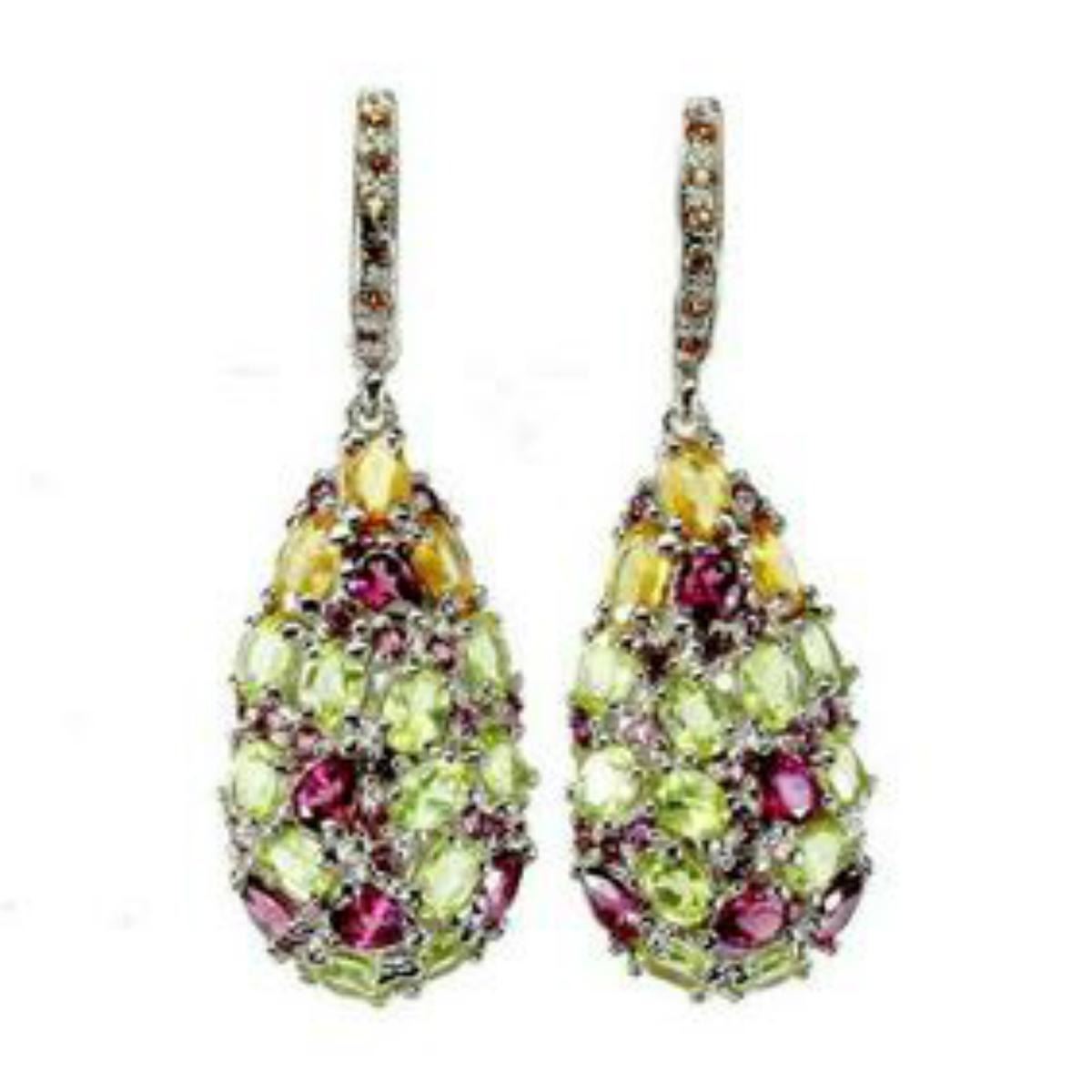 925 STERLING SILVER;PLATE-14K WHITE GOLD;MAIN STONE-PERIDOT;OTHER GEMS-RHODOLITE GARNET, SAPPHIRE, SAPPHIRE DIAMOND CUT;TOTAL WEIGHT-9.32 GRAM (TOTAL WEIGHT OF SILVER + STONE)DIMENSION-* STONE 1.0 TO 5.0 X 3.0 MM.* FACE EARRINGS -43.0 X 16.0 MM.;MAIN STONE SHAPE-OVAL CUT;MAIN STONE COLOR- GREEN;CLARITY/GRADE-IF;TREATMENT-UNHEATED;ORIGIN-PAKISTAN;
