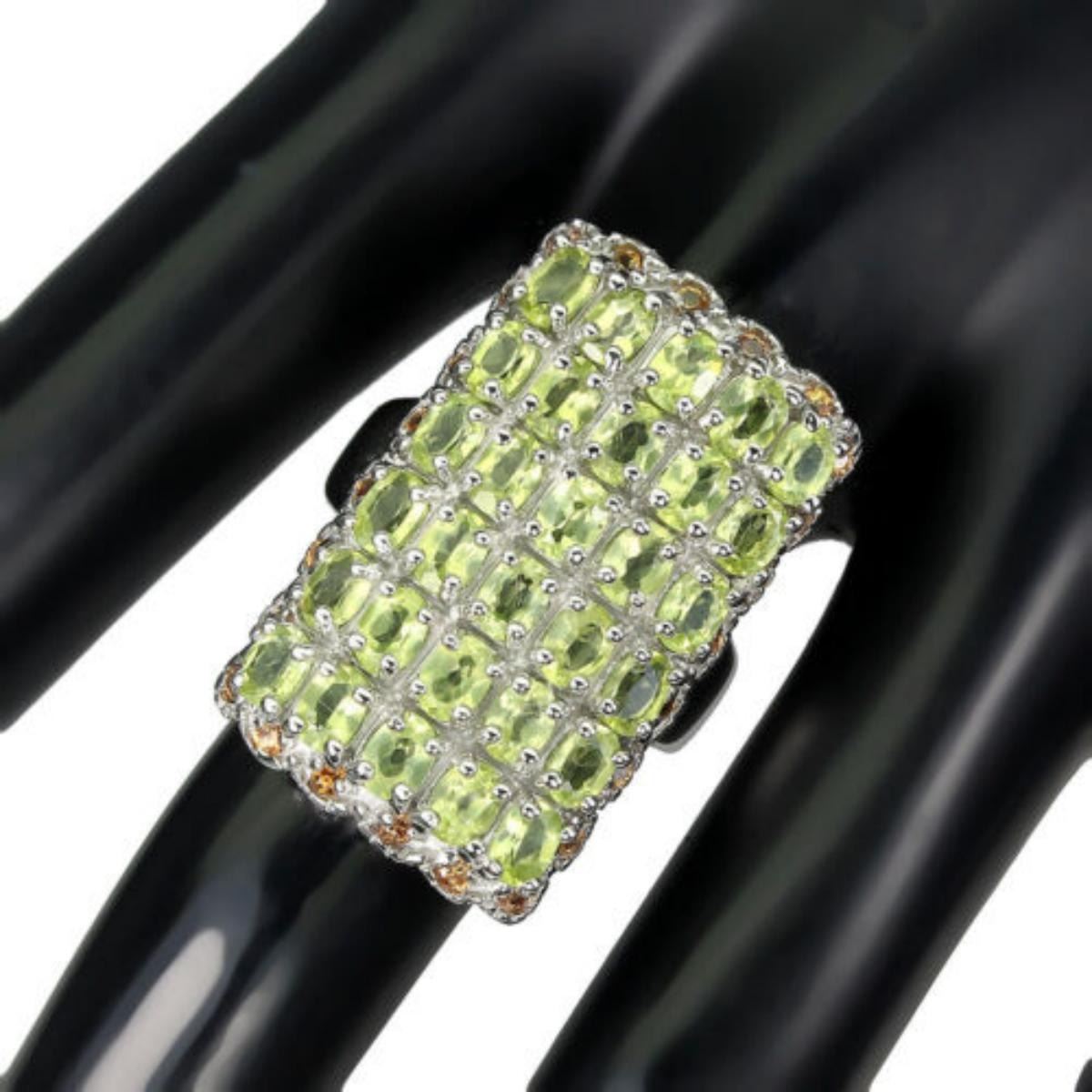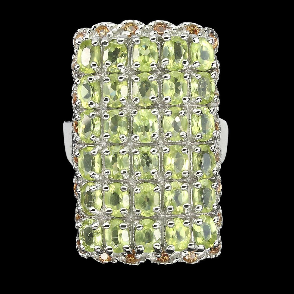 925 STERLING SILVER;PLATE-14K WHITE GOLD;RING SIZE-7.5(RESIZABLE);MAIN STONE-PERIDOT;OTHER GEMS-SAPPHIRE; TOTAL WEIGHT-11.76 GRAM (TOTAL WEIGHT OF SILVER + STONE);DIMENSION-* STONE 2.0 TO 4.0 X 3.0 MM.* RING SIZE 7.5* FACE RING 30.0 X 18.0 MM.;MAIN STONE SHAPE-OVAL; MAIN STONE COLOR-GREEN;CLARITY/GRADE-IF TO VVS;TREATMENT-UNHEATED;ORIGIN-PAKISTAN;HARDNESS-6.5 - 7.0;