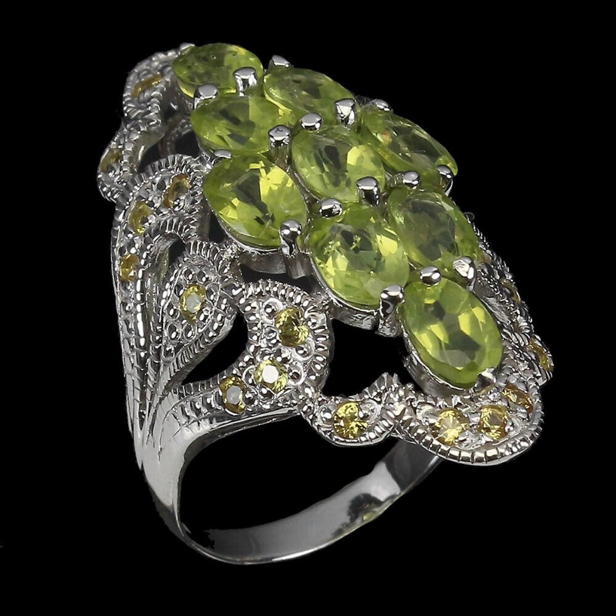 925 STERLING SILVER;PLATE-14K WHITE GOLD;RING SIZE-8(RESIZABLE);MAIN STONE-PERIDOT;OTHER GEMS-SAPPHIRE; TOTAL WEIGHT-8.01 GRAM (TOTAL WEIGHT OF SILVER + STONE);DIMENSION-* STONE 1.5 TO 6.0 X 4.0 MM. * RING SIZE 8.0 * FACE RING 34.0 X 20.0 MM.;MAIN STONE SHAPE-OVAL; MAIN STONE COLOR-GREEN;CLARITY/GRADE-IF TO VVS;TREATMENT-UNHEATED;ORIGIN-PAKISTAN;HARDNESS-6.5 - 7.0;