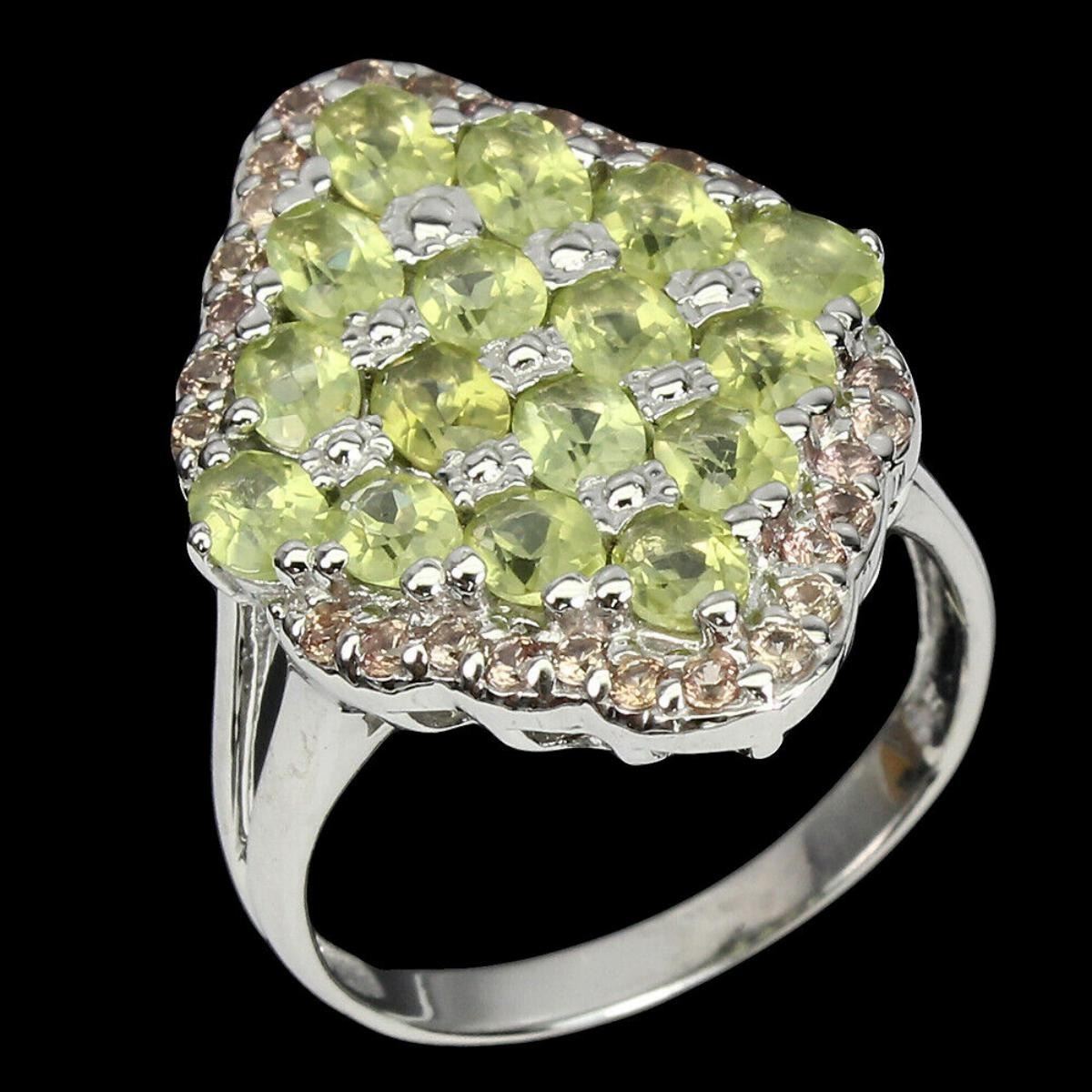 925 STERLING SILVER;PLATE-14K WHITE GOLD;RING SIZE-7.5(RESIZABLE);MAIN STONE-PERIDOT;OTHER GEMS-SAPPHIRE ;TOTAL WEIGHT-5.77 GRAM (TOTAL WEIGHT OF SILVER + STONE)DIMENSION-* STONE 1.5 TO 4.0 X 3.0 MM.* RING SIZE 7.5;* FACE RING 25.0 X 18.0 MM.;MAIN STONE SHAPE-OVAL;MAIN STONE COLOR- GREEN;CLARITY/GRADE-IF TO VVS;TREATMENT-UNHEATED;ORIGIN-PAKISTAN;HARDNESS-6.5 - 7.0;