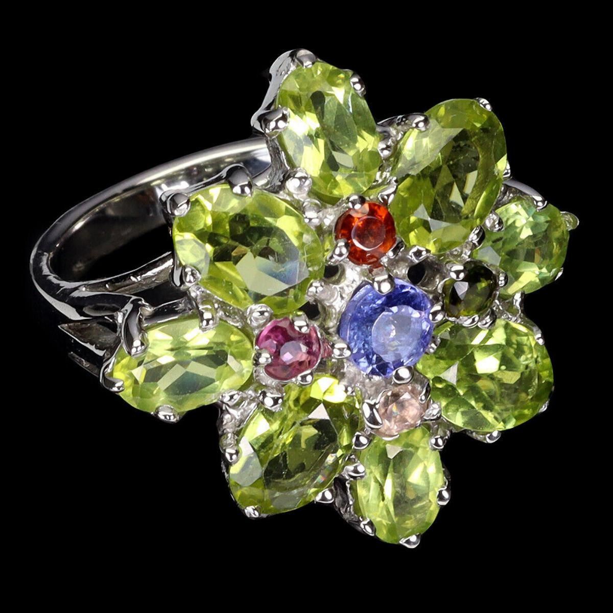 925 STERLING SILVER;PLATE-14K WHITE GOLD;RING SIZE/resizable-7;MAIN STONE-PERIDOT;OTHER GEMS-SAPPHIRE, TANZANITE, TOURMALINE;TOTAL WEIGHT-7.48 GRAM (TOTAL WEIGHT OF SILVER + STONE)DIMENSION-* STONE 2.5 TO 7.0 X 5.0 MM.;* FACE RING -23.0 X 23.0 MM.;MAIN STONE SHAPE-OVAL CUT;MAIN STONE COLOR-TOP RICH GREEN;CLARITY/GRADE-IF TO VVS;TREATMENT-UNHEATED;ORIGIN-PAKISTAN;HARDNESS-6.5 - 7.0;