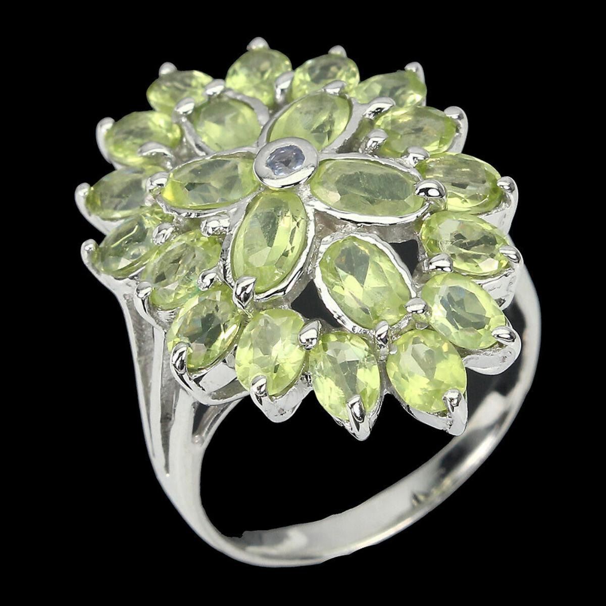 925 STERLING SILVER;PLATE-14K WHITE GOLD;RING SIZE-7(RESIZABLE);MAIN STONE-PERIDOT;OTHER GEMS-TANZANITE;TOTAL WEIGHT-5.41 GRAM (TOTAL WEIGHT OF SILVER + STONE);DIMENSION-* STONE 2.0 TO 5.0 X 3.0 MM.* RING SIZE 7.0* FACE RING 26.0 X 18.0 MM.;MAIN STONE SHAPE-OVAL ;MAIN STONE COLOR-GREEN;CLARITY/GRADE-IF TO VVS;TREATMENT-UNHEATED;ORIGIN-PAKISTAN;HARDNESS-6.5 - 7.0;