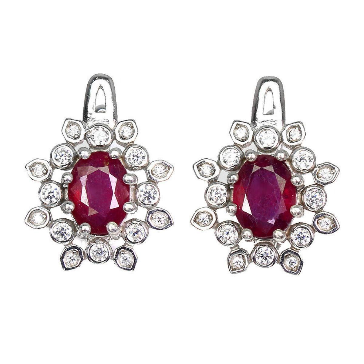 925 STERLING SILVER;PLATE-14K WHITE GOLD;MAIN STONE-RUBY;TOTAL WEIGHT-4.69 GRAM (TOTAL WEIGHT OF SILVER + STONE)DIMENSION-* STONE 8.0 X 6.0 MM.;* FACE EARRINGS- 19.0 X 14.0 MM.;MAIN STONE SHAPE-OVAL CUT;MAIN STONE COLOR-BLOOD RED;TREATMENT-Yes;;ORIGIN-MADAGASCAR;HARDNESS-9.0;