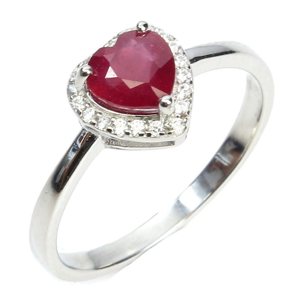 925 STERLING SILVER;PLATE-14K WHITE GOLD;RING SIZE/Resizable-9.5;MAIN STONE-RUBY;TOTAL WEIGHT-2.27 GRAM (TOTAL WEIGHT OF SILVER + STONE)DIMENSION-* STONE 6.0 MM. * CZ 1.0 MM. * RING 9.5 SIZE * FACE RING- 9.0 X 8.0 MM.;MAIN STONE SHAPE-HEART CUT;MAIN STONE COLOR- BLOOD RED;TREATMENT-Yes;ORIGIN-MADAGASCAR;HARDNESS-9;