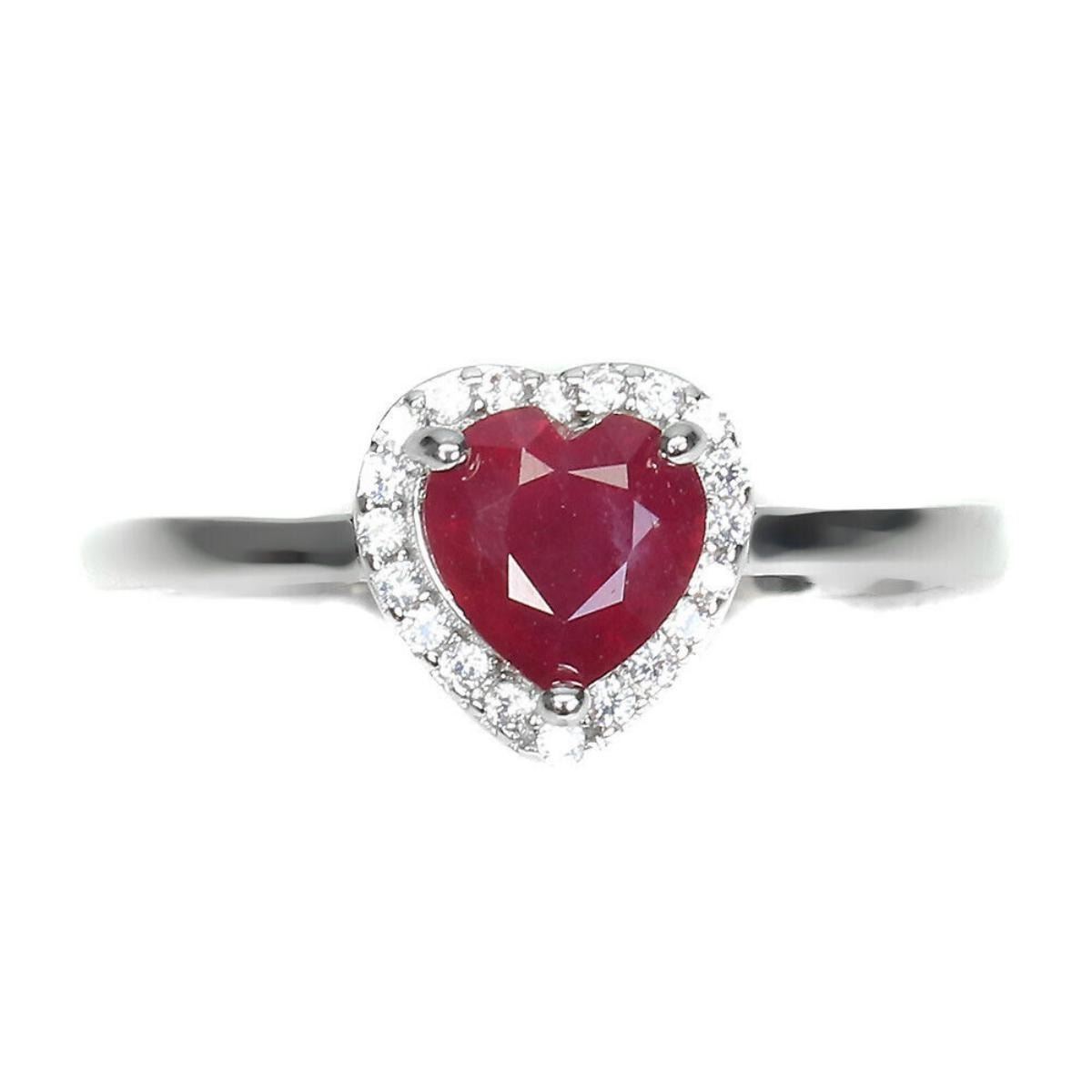 925 STERLING SILVER;PLATE-14K WHITE GOLD;RING SIZE/Resizeable-8;MAIN STONE-RUBY;TOTAL WEIGHT-2.27 GRAM (TOTAL WEIGHT OF SILVER + STONE)DIMENSION-* STONE 6.0 MM. * CZ 1.0 MM. * RING 8.0 SIZE * FACE RING- 9.0 X 8.0 MM.;MAIN STONE SHAPE-HEART CUT;MAIN STONE COLOR- BLOOD RED;TREATMENT-Yes;ORIGIN-MADAGASCAR;HARDNESS-9;