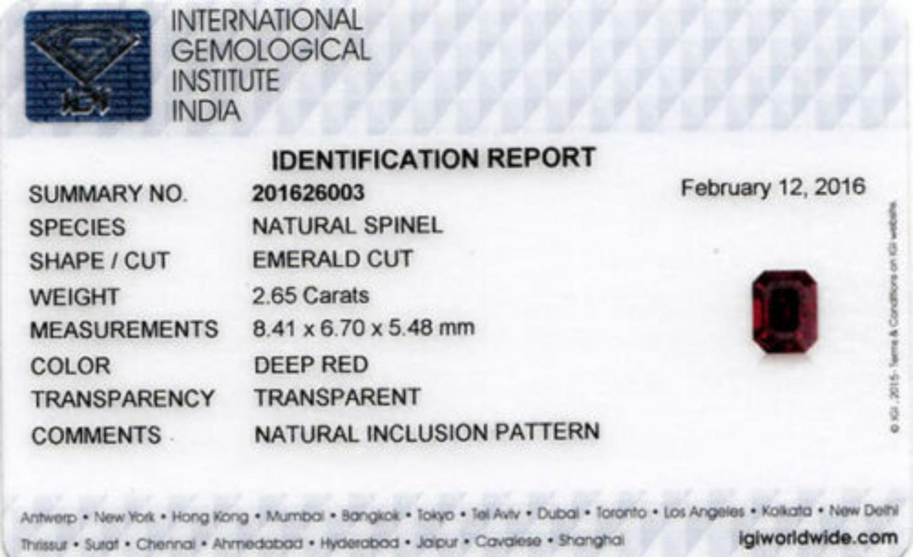 Natural Pigeon Blood Red Mahange Spinel 2.65 cts; Color - Deep Pigeon Blood Red; Size 8.41x6.70x5.48 MM; Clarity - SI; completely untreated....100% natural earth mined; Origin: Mahenge (Tanzania)...Certified IGI