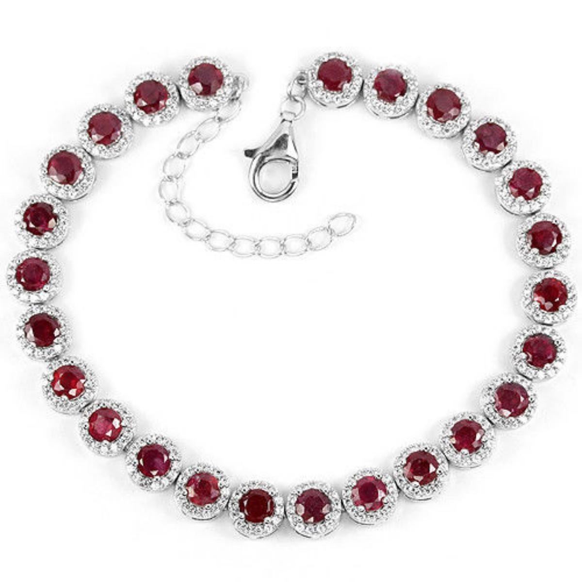 GENUINE BLOOD RED RUBY WHITE CZ 925 SILVER BRACELET 14K WHITE GOLD COATING;LENGTH OF ITEM (Inch.) 9.00 ; ITEM QUANTITY -1; STONE SHAPE -ROUND FACET CUT; STONE DIMENSION -4 MM.; ITEM WEIGHT -12.7 GRAM COLOR -Pigeon BLOOD RED; LUSTER -ELEGANT; TREATMENT -HEATED; ORIGIN OF STONE- AFRICA HARDNESS -9.0; WHITE CUBIC ZIRCONIA- 1 MM.;