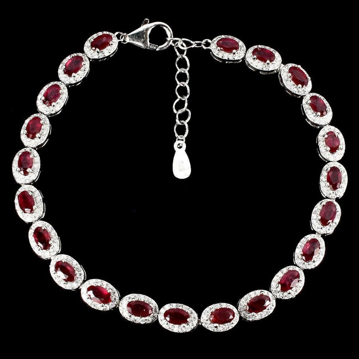925 STERLING SILVER;PLATE14K WHITE GOLD;LENGTH (INCHES)8.5;MAIN STONE-RUBY;TOTAL WEIGHT-11.13 GRAM (TOTAL WEIGHT OF SILVER + STONE)DIMENSION-* STONE 5.0 X 3.0 MM. * CZ 1.0 MM. * TOTAL LENGTH 8.5 INCHES. * FACE BRACELET 175.0 X 6.0 MM.;MAIN STONE SHAPE-OVAL CUT;MAIN STONE COLOR-TOP BLOOD RED;TREATMENT-Yes;ORIGIN-MADAGASCAR;HARDNESS-9;