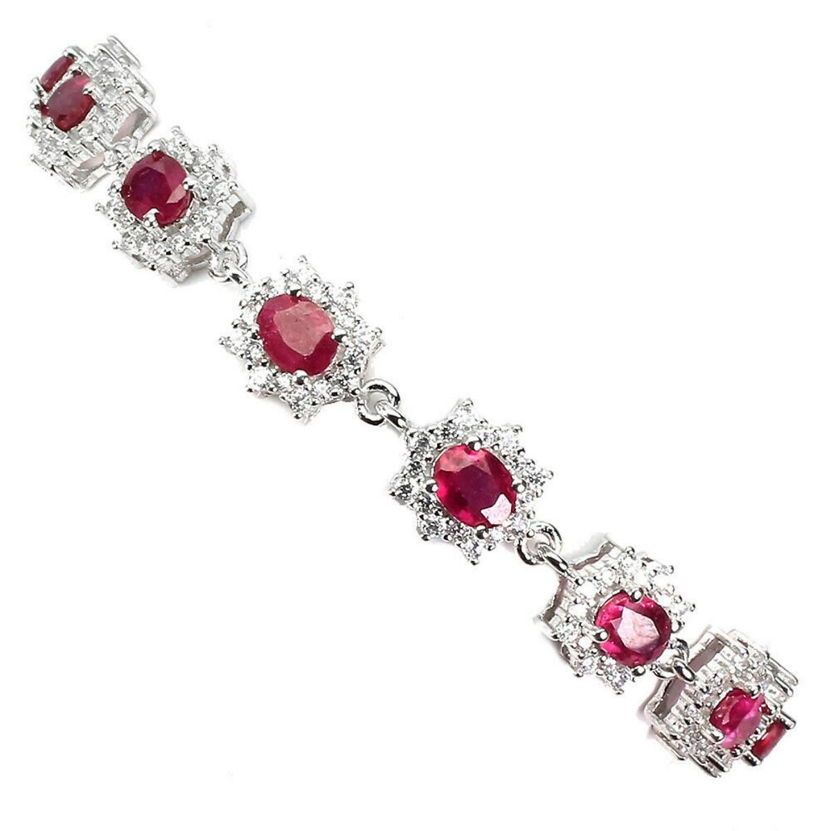 925 STERLING SILVER;PLATE-14K WHITE GOLD;LENGTH (INCHES)-7;MAIN STONE-RUBY;TOTAL WEIGHT-10.95 GRAM (TOTAL WEIGHT OF SILVER + STONE);DIMENSION-* STONE 5.0 X 4.0 MM. * TOTAL LENGTH 7.0 INCHES. * FACE BRACELET 160.0 X 8.0 MM.;MAIN STONE SHAPE-OVAL CUT;MAIN STONE COLOR-BLOOD RED;CLARITY/GRADE-TRANSPARENT;TREATMENT-YES;ORIGIN-MADAGASCAR;HARDNESS-9.0;