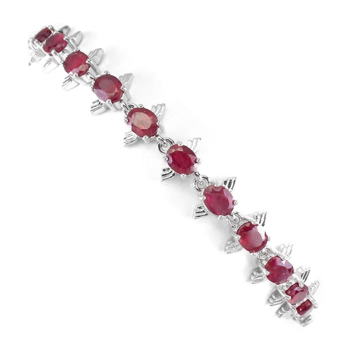 925 STERLING SILVER;PLATE-14K WHITE GOLD;LENGTH (INCHES)7;MAIN STONE-RUBY;TOTAL WEIGHT-10.65 GRAM (TOTAL WEIGHT OF SILVER + STONE)DIMENSION-* STONE 5.0 X 4.0 MM. * LENGTH INCHES.* FACE BRACELET- 165.0 X 9.0 MM.;MAIN STONE SHAPE-OVAL CUT;MAIN STONE COLOR-BLOOD RED;TREATMENT-Yes;ORIGIN-MADAGASCAR;HARDNESS-9;