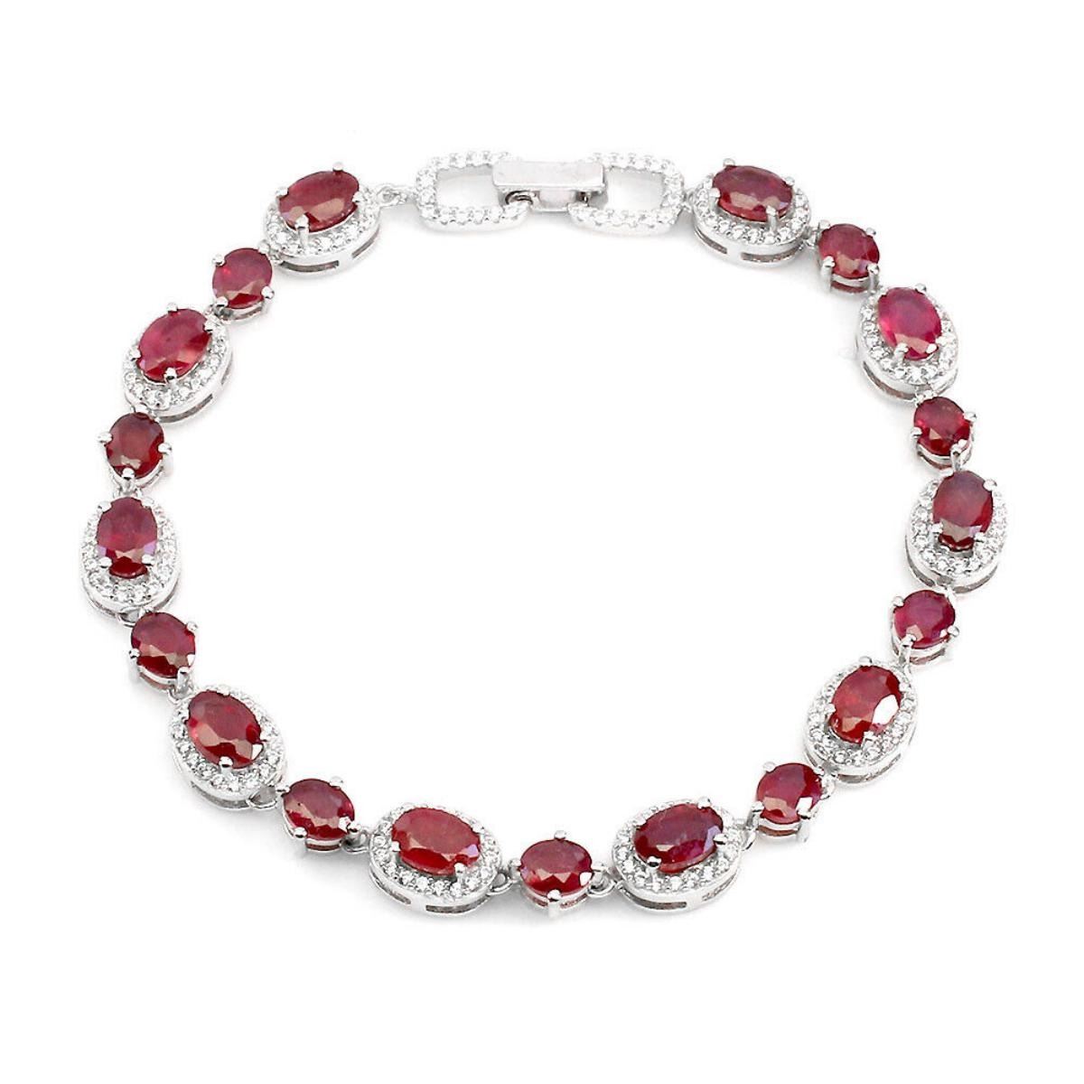 925 STERLING SILVER;PLATE-14K WHITE GOLD;LENGTH (INCHES)7;MAIN STONE-RUBY;TOTAL WEIGHT-11.28 GRAM (TOTAL WEIGHT OF SILVER + STONE)DIMENSION-* STONE 5.0 X 4.0 TO 6.0 X 4.0 MM.;* TOTAL LENGTH- 7.0 INCHES.;* FACE BRACELET- 175.0 X 7.0 MM.;MAIN STONE SHAPE-OVAL CUT;MAIN STONE COLOR- BLOOD RED;TREATMENT-- Yes;ORIGIN-MADAGASCAR;HARDNESS-9.0;