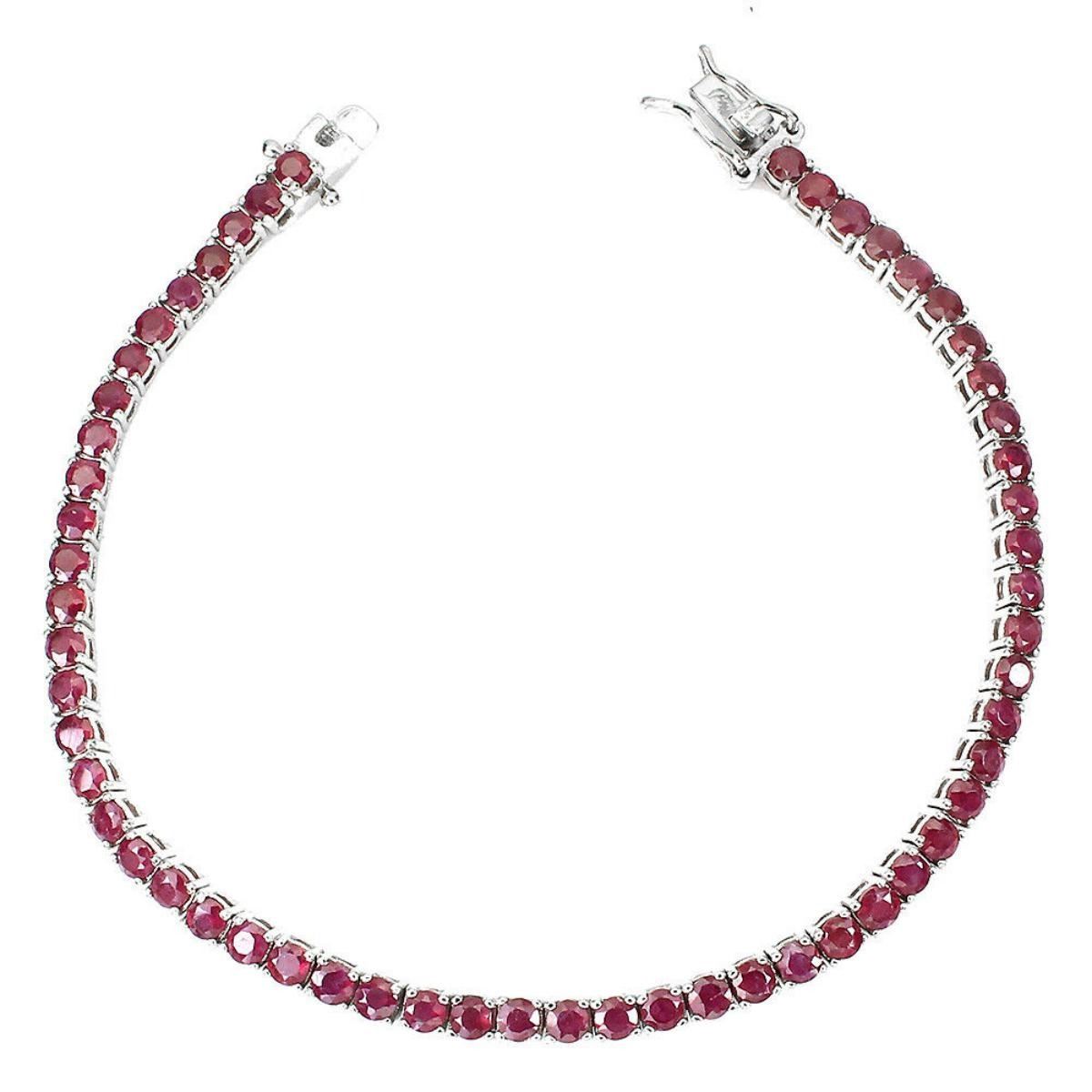 925 STERLING SILVER;PLATE-14K WHITE GOLD;LENGTH (INCHES)-8;MAIN STONE-RUBY;TOTAL WEIGHT-9.44 GRAM (TOTAL WEIGHT OF SILVER + STONE);DIMENSION-* STONE 3.0 MM.* TOTAL LENGTH 8.0 INCHES.* FACE BRACELET 190.0 X 3.0 MM.;MAIN STONE SHAPE-ROUND; MAIN STONE COLOR-PIGEON BLOOD RED;TREATMENT-YES;ORIGIN-MADAGASCAR;HARDNESS-9;