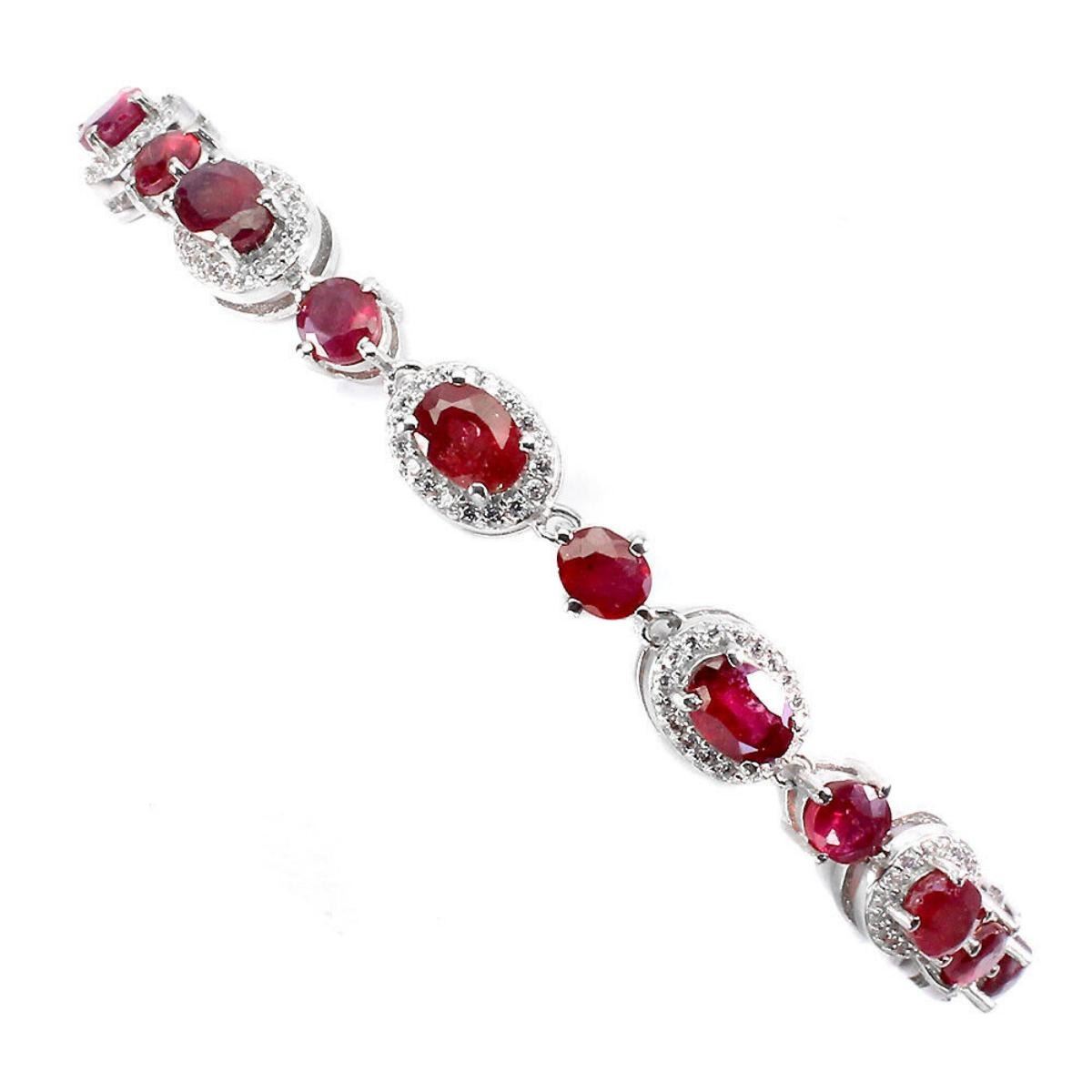 925 STERLING SILVER;PLATE-14K WHITE GOLD;LENGTH (INCHES)7;MAIN STONE-RUBY;TOTAL WEIGHT-11.28 GRAM (TOTAL WEIGHT OF SILVER + STONE)DIMENSION-* STONE 5.0 X 4.0 TO 6.0 X 4.0 MM.;* TOTAL LENGTH- 7.0 INCHES.;* FACE BRACELET- 175.0 X 7.0 MM.;MAIN STONE SHAPE-OVAL CUT;MAIN STONE COLOR- BLOOD RED;TREATMENT-- Yes;ORIGIN-MADAGASCAR;HARDNESS-9.0;