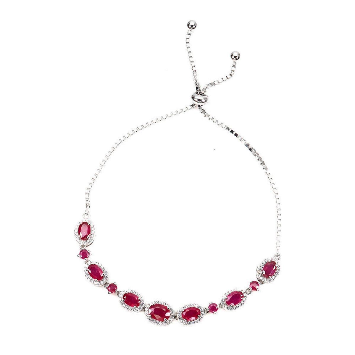 925 STERLING SILVER;PLATE-14K WHITE GOLD;LENGTH (INCHES)9;MAIN STONE-RUBY;TOTAL WEIGHT-8.84 GRAM (TOTAL WEIGHT OF SILVER + STONE)DIMENSION-* STONE 3.0 TO 7.0 X 5.0 MM. * CZ 1.0 MM. * TOTAL LENGTH 9.0 INCHES. * FACE BRACELET 85.0 X 8.0 MM.;MAIN STONE SHAPE-OVAL CUT;;Color - Pigeon blood red;TREATMENT-Yes;ORIGIN-MADAGASCAR;HARDNESS-9;