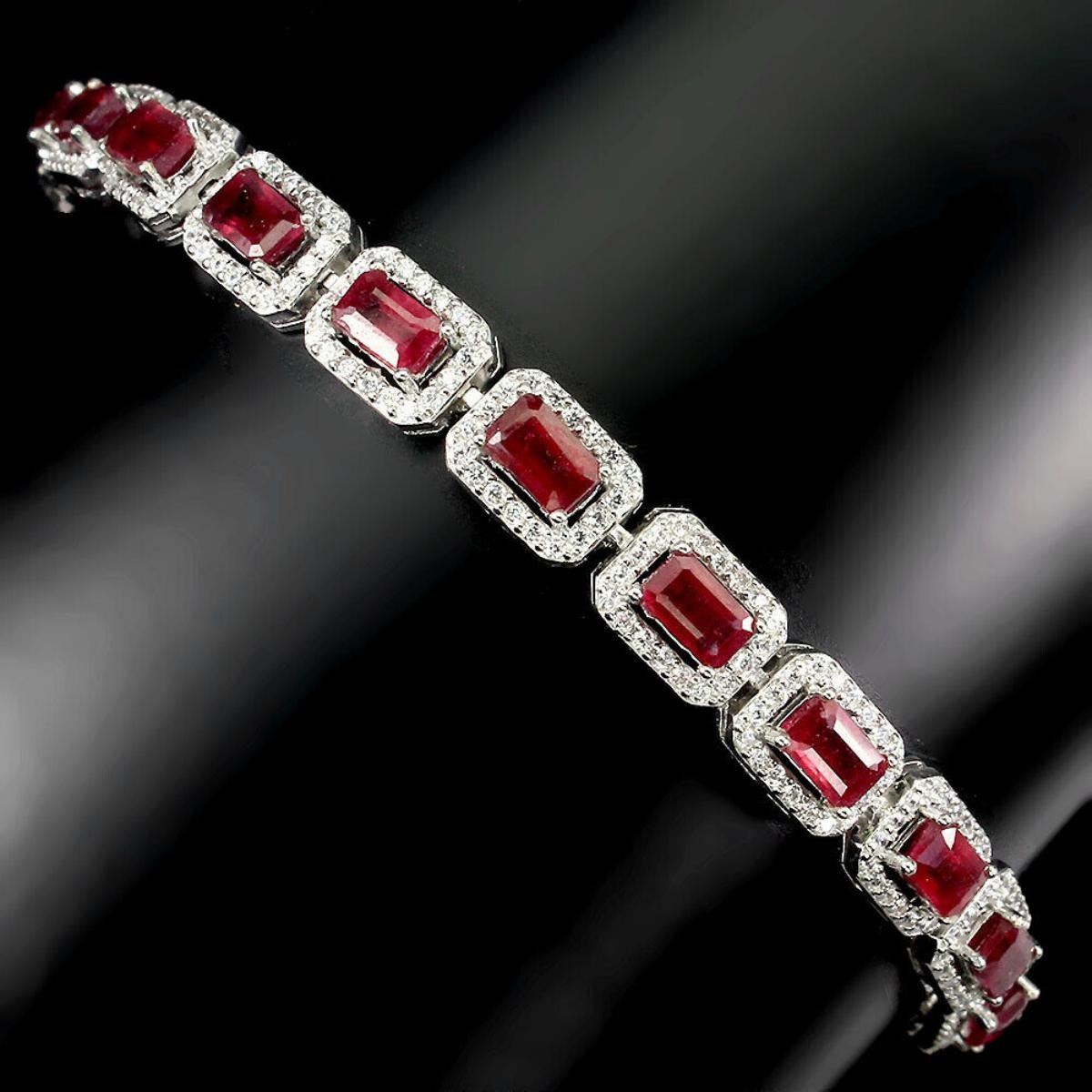 925 STERLING SILVER;PLATE-14K WHITE GOLD;LENGTH (INCHES)7.5;MAIN STONE-RUBY;TOTAL WEIGHT-11.49 GRAM (TOTAL WEIGHT OF SILVER + STONE)DIMENSION-* STONE 5.0 X 3.0 MM.;* TOTAL LENGTH- 7.5 INCHES.;* FACE BRACELET- 165.0 X 6.0 MM.;MAIN STONE SHAPE-OCTAGON CUT;MAIN STONE COLOR-TOP BLOOD RED;TREATMENT-Yes;ORIGIN-MADAGASCAR;HARDNESS-9.0;