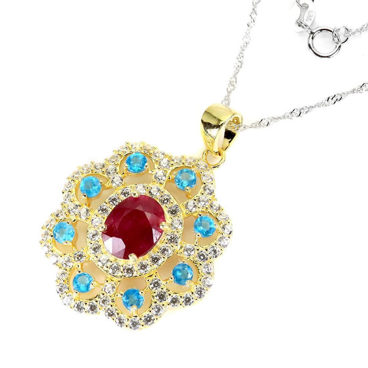925 STERLING SILVER;PLATE-14K YELLOW GOLD;RING SIZE/LENGTH (INCHES)18;MAIN STONE-RUBY;OTHER GEMS-APATITE, TOTAL WEIGHT-7.85 GRAM (TOTAL WEIGHT OF SILVER + STONE)DIMENSION-* STONE 3.0 TO 10.0 X 8.0 MM.;* TOTAL LENGTH- 18.0 INCHES.* STONES PART LENGTH 38.0 X 26.0 MM.;MAIN STONE SHAPE-OVAL CUT;MAIN STONE COLOR- BLOOD RED;TREATMENT-Yes;ORIGIN-MADAGASCAR;HARDNESS-9.0;