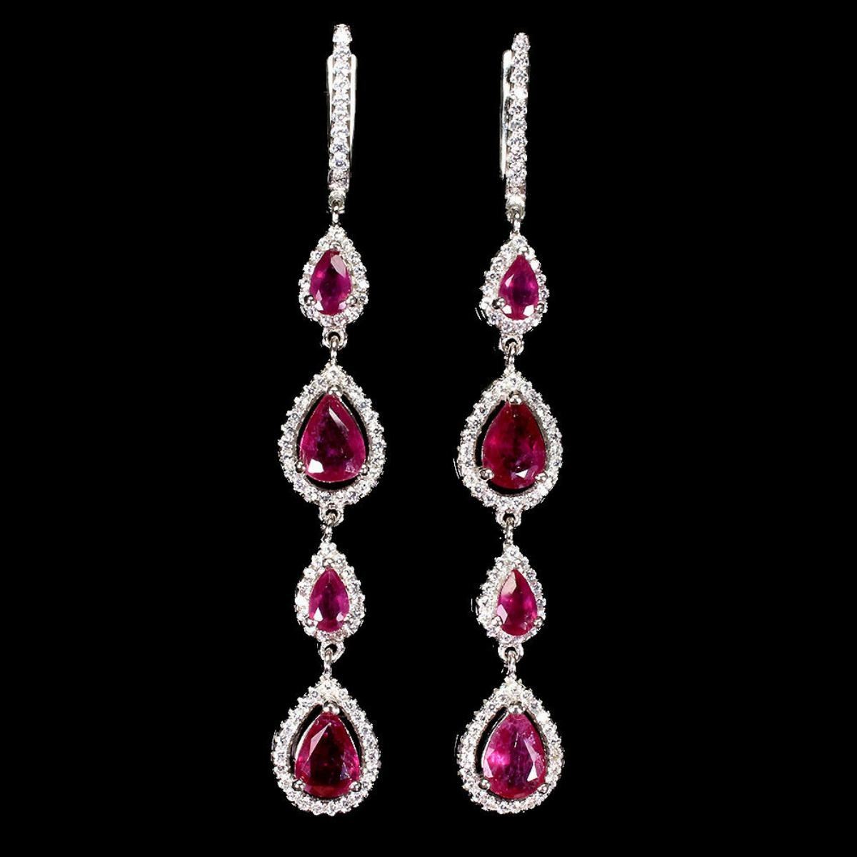 925 STERLING SILVER; PLATE-14K WHITE GOLD; ; MAIN STONE-RUBY; TOTAL WEIGHT-8.62 GRAM (TOTAL WEIGHT OF SILVER + STONE) DIMENSION-* STONE 5.0 X 3.0 TO 7.0 X 5.0 MM. * CZ 1.0 MM. * FACE EARRINGS- 62.0 X 9.0 MM.; MAIN STONE SHAPE-PEAR CUT; MAIN STONE COLOR-TOP BLOOD RED; CLARITY/GRADE-TRANSPARENT; TREATMENT-- Yes; ORIGIN-MADAGASCAR; HARDNESS-9;