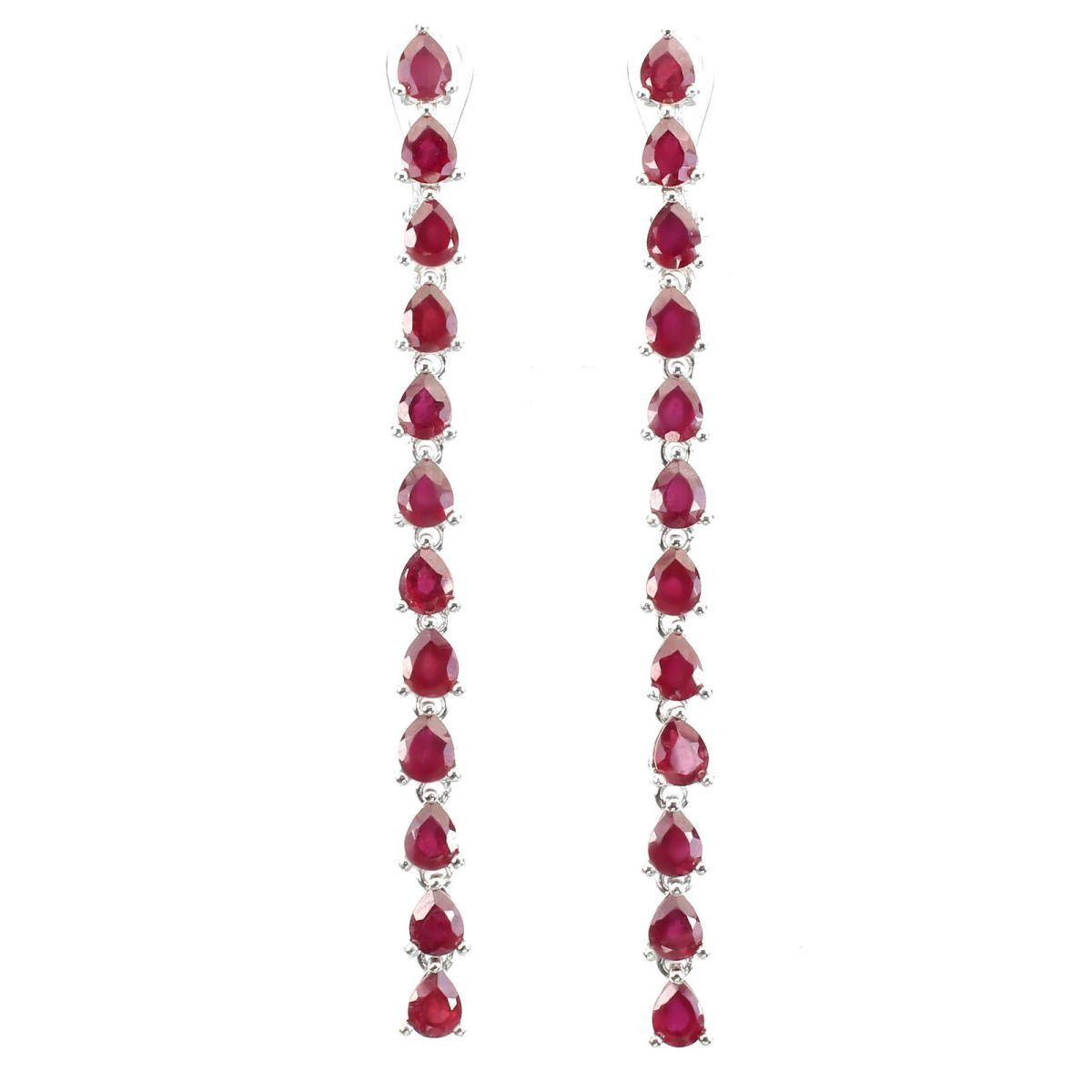 925 STERLING SILVER; PLATE- 14K WHITE GOLD; MAIN STONE- RUBY; TOTAL WEIGHT- 10.37 GRAM (TOTAL WEIGHT OF SILVER + STONE); DIMENSION- * STONE 5.0 X 4.0 MM.* FACE EARRINGS 70.0 X 5.0 MM.; MAIN STONE SHAPE- PEAR CUT; MAIN STONE COLOR- PIGEON BLOOD RED; TREATMENT- YES; ORIGIN- MADAGASCAR; HARDNESS- 9.0;