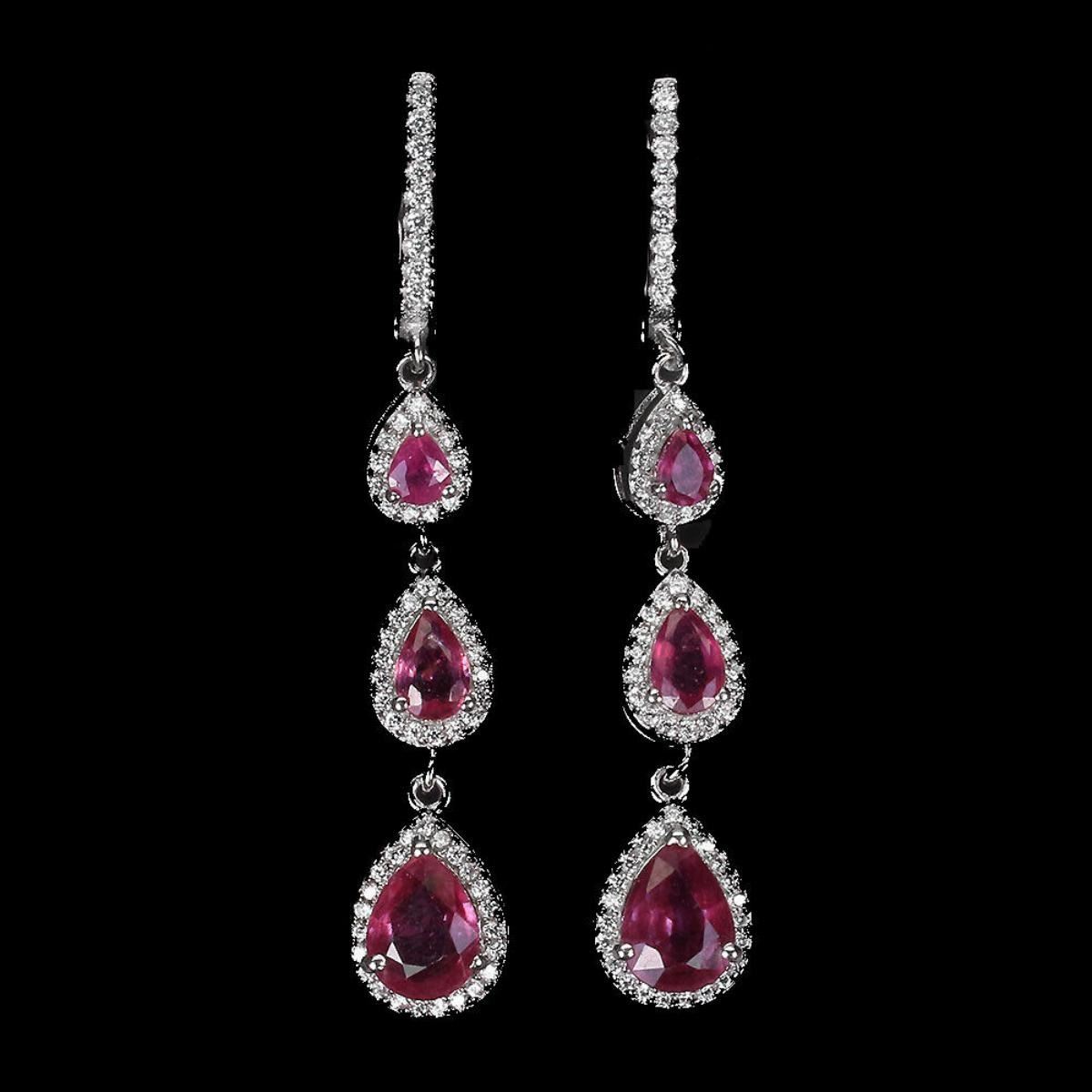 925 STERLING SILVER;PLATE-14K WHITE GOLD;MAIN STONE-RUBY;TOTAL WEIGHT-7.41 GRAM (TOTAL WEIGHT OF SILVER + STONE);DIMENSION-* STONE 4.0 X 3.0 TO 8.0 X 6.0 MM.* FACE EARRINGS 50.0 X 8.0 MM.;MAIN STONE SHAPE-PEAR ;MAIN STONE COLOR-PIGEON BLOOD RED;TREATMENT-YES;ORIGIN-MADAGASCAR;HARDNESS-9;