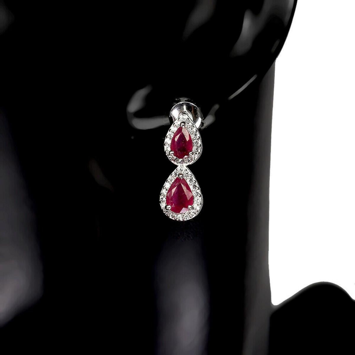 925 STERLING SILVER;PLATE-14K WHITE GOLD;MAIN STONE-RUBY;TOTAL WEIGHT-3.38 GRAM (TOTAL WEIGHT OF SILVER + STONE)DIMENSION-* STONE 6.0 X 4.0 TO 7.0 X 5.0 MM. * CZ 1.0 MM. * FACE EARRINGS- 20.0 X 8.0 MM.MAIN STONE SHAPE-PEAR CUT;MAIN STONE COLOR- BLOOD RED;TREATMENT- Yes;ORIGIN-MADAGASCAR;HARDNESS-9.0;