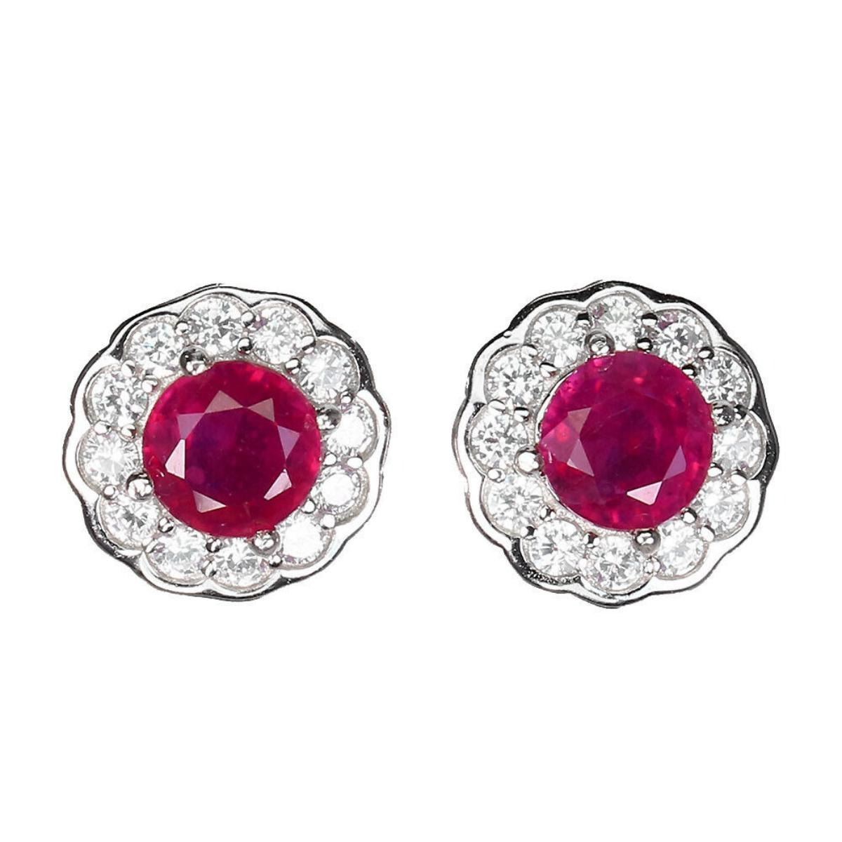 925 STERLING SILVER;PLATE-14K WHITE GOLD;MAIN STONE-RUBY;TOTAL WEIGHT-2.92 GRAM (TOTAL WEIGHT OF SILVER + STONE)DIMENSION-* STONE 5.0 MM.;* FACE EARRINGS -10.0 X 10.0 MM.;MAIN STONE SHAPE-ROUND CUT;MAIN STONE COLOR-BLOOD RED;TREATMENT-Yes;ORIGIN-MADAGASCAR;HARDNESS-9;