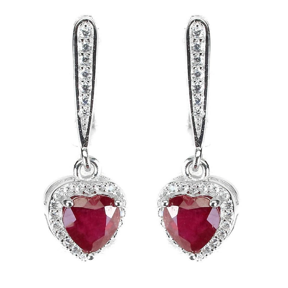 925 STERLING SILVER;PLATE-14K WHITE GOLD;MAIN STONE-RUBY;TOTAL WEIGHT-4.06 GRAM (TOTAL WEIGHT OF SILVER + STONE)DIMENSION-* STONE 6.0 MM. * CZ 1.0 TO 1.5 MM. * FACE EARRINGS 25.0 X 9.0 MM;MAIN STONE SHAPE-HEART CUT;MAIN STONE COLOR- BLOOD RED;TREATMENT-Yes;ORIGIN-MADAGASCAR;HARDNESS-9;