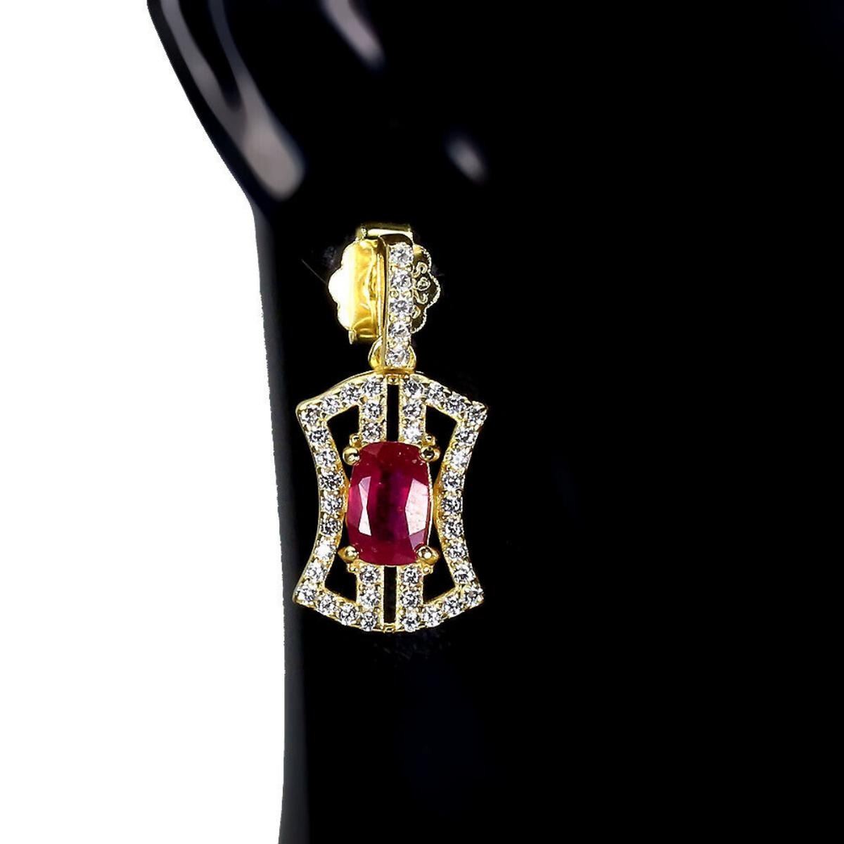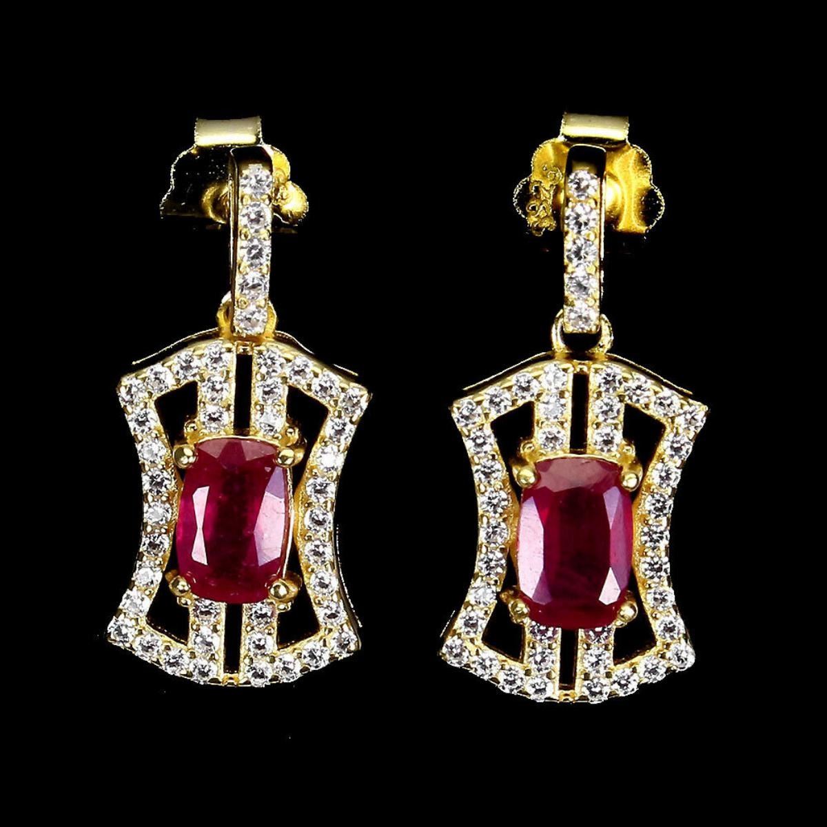 925 STERLING SILVER;PLATE-14K YELLOW GOLD;MAIN STONE-RUBY;TOTAL WEIGHT-2.16 GRAM (TOTAL WEIGHT OF SILVER + STONE);DIMENSION-* STONE 6.0 X 4.0 MM.* FACE EARRINGS 19.0 X 9.0 MM.;MAIN STONE SHAPE-ANTIQUE CUT;MAIN STONE COLOR-PIGEON BLOOD RED;TREATMENT- YES;ORIGIN-MADAGASCAR;HARDNESS-9.0;