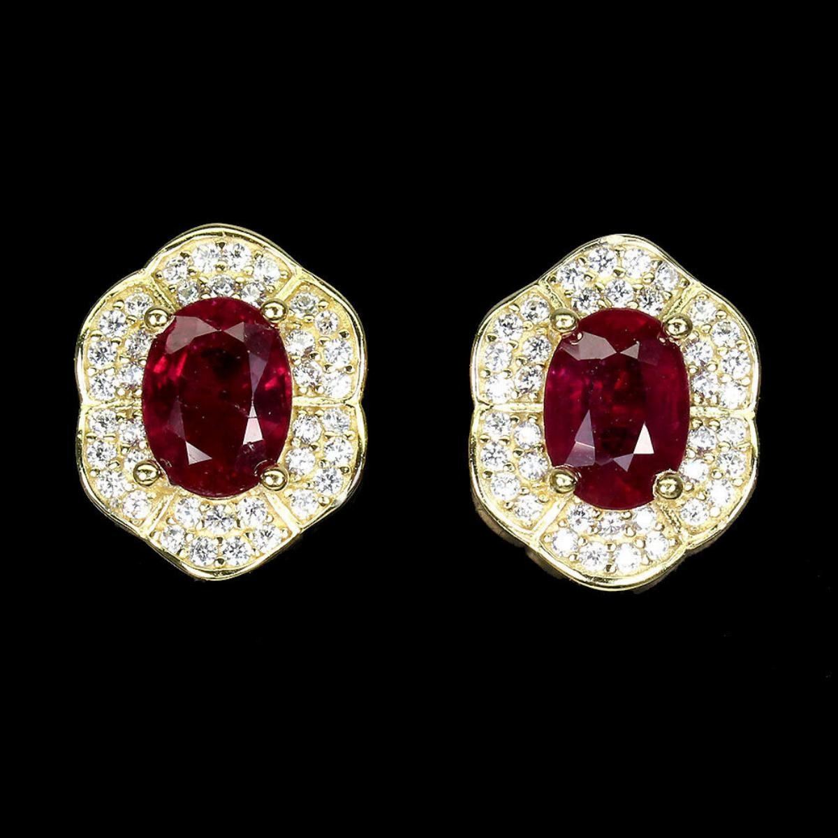 925 STERLING SILVER;PLATE-14K YELLOW GOLD;MAIN STONE-RUBY;TOTAL WEIGHT-3.59 GRAM (TOTAL WEIGHT OF SILVER + STONE)DIMENSION-* STONE 7.0 X 5.0 MM.;* FACE EARRINGS- 12.0 X 10.0 MM.;MAIN STONE SHAPE-OVAL CUT;MAIN STONE COLOR- BLOOD RED;TREATMENT-Yes;ORIGIN-MADAGASCAR;HARDNESS-9.0;