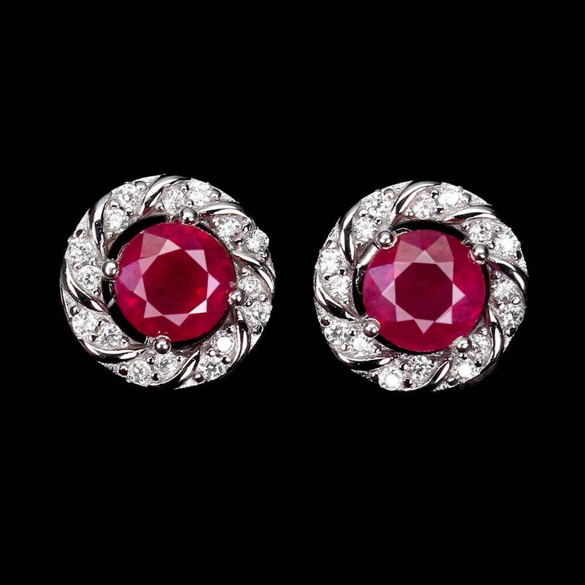 925 STERLING SILVER;PLATE-14K WHITE GOLD;MAIN STONE-RUBY;TOTAL WEIGHT-3.7 GRAM (TOTAL WEIGHT OF SILVER + STONE);DIMENSION-* STONE 6.0 MM.* FACE EARRINGS 10.0 X 10.0 MM.;MAIN STONE SHAPE-ROUND; MAIN STONE COLOR-PIGEON BLOOD RED;TREATMENT- YES;ORIGIN-MADAGASCAR;HARDNESS-9.0;