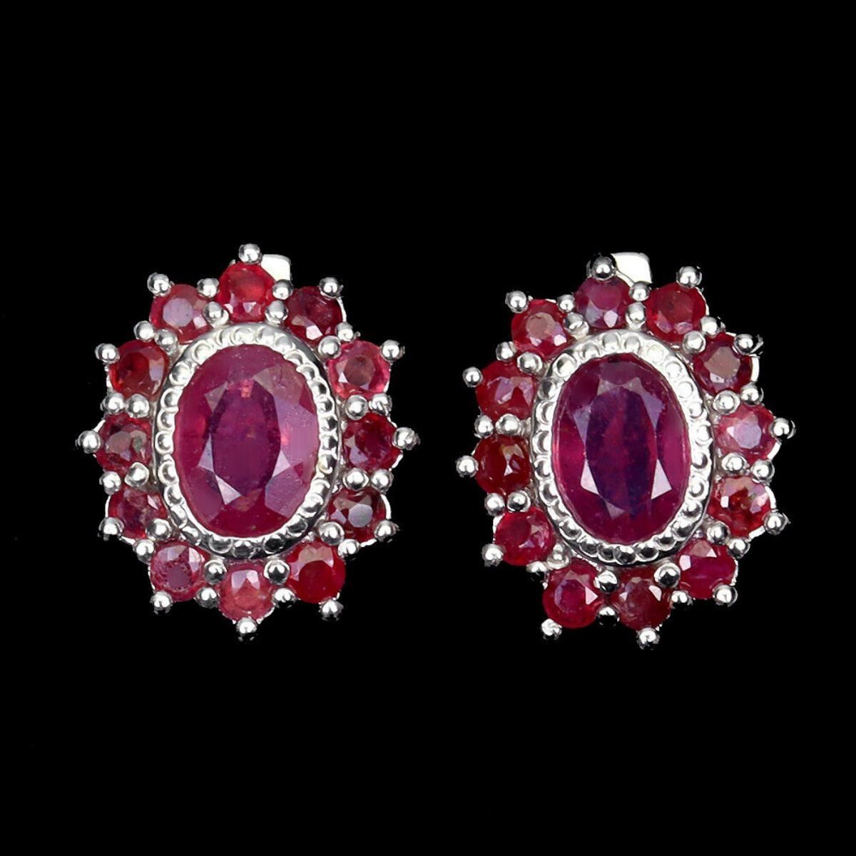 925 STERLING SILVER;PLATE-14K WHITE GOLD;MAIN STONE-RUBY;TOTAL WEIGHT-5.73 GRAM (TOTAL WEIGHT OF SILVER + STONE)DIMENSION-* STONE 2.5 TO 8.0 X 6.0 MM.* FACE EARRINGS- 16.0 X 14.0 MM.MAIN STONE SHAPE-OVAL CUTMAIN STONE COLOR- RED ;TREATMENT-Yes;ORIGIN-MOZAMBIQUE;HARDNESS--9;
