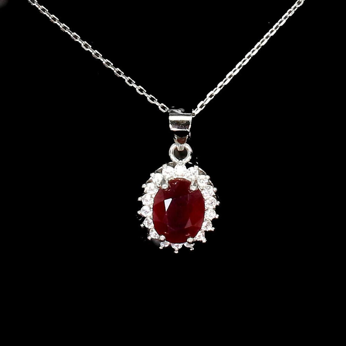 925 STERLING SILVER;PLATE-14K WHITE GOLD;;LENGTH- (INCHES)16;MAIN STONE-RUBY;TOTAL WEIGHT-2.75 GRAM (TOTAL WEIGHT OF SILVER + STONE)DIMENSION-* STONE 9.0 X 7.0 MM. * CZ 1.5 MM. * TOTAL LENGTH 16.0 INCHES. * STONES PART LENGTH 20.0 X 11.0 MM.;MAIN STONE SHAPE-OVAL CUT;MAIN STONE COLOR- BLOOD RED;TREATMENT- Yes;ORIGIN-MADAGASCAR;HARDNESS-9.0;