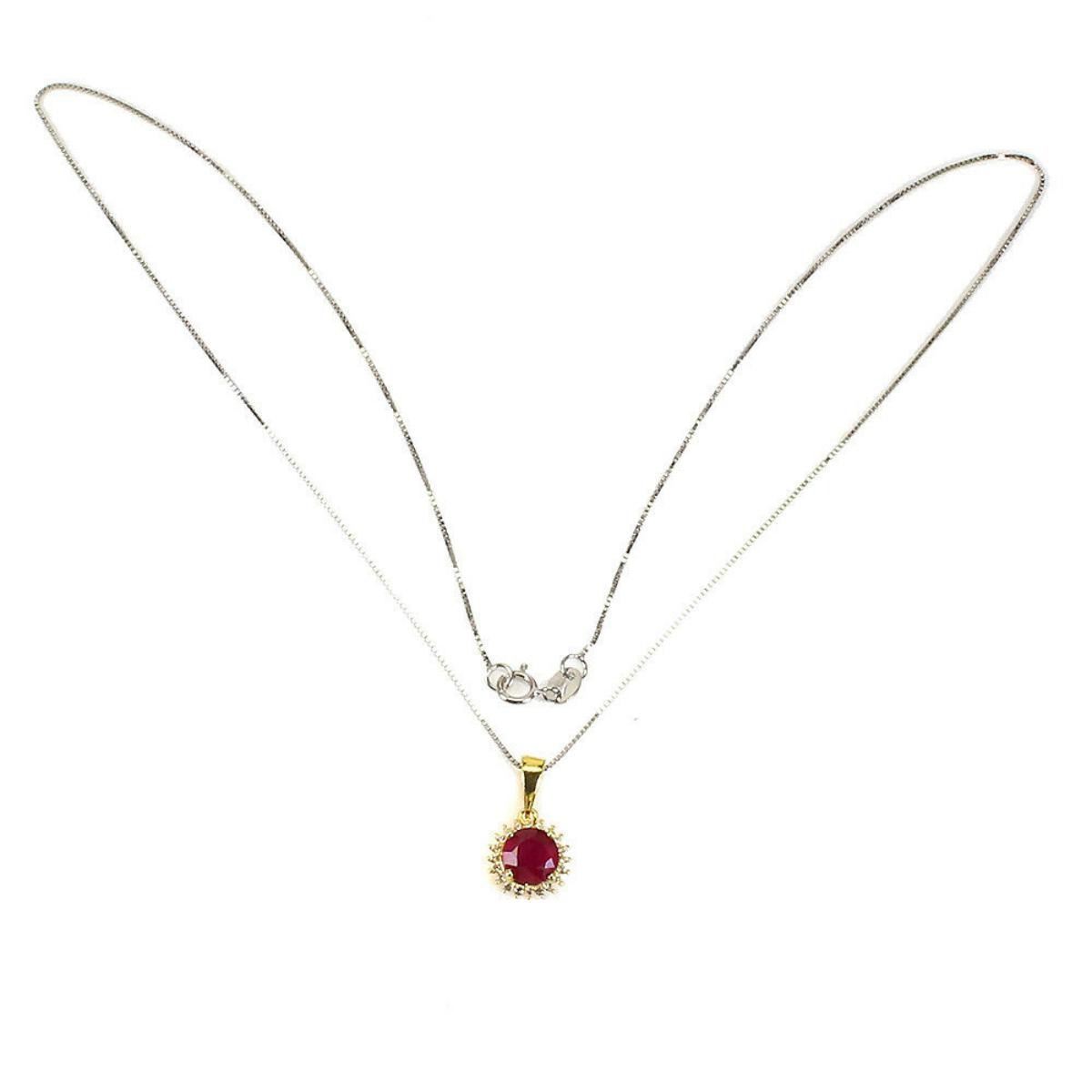 925 STERLING SILVER;PLATE-14K YELLOW GOLD;LENGTH (INCHES)-18;MAIN STONE-RUBY;OTHER GEMS-WHITE TOPAZ;TOTAL WEIGHT-2.3 GRAM (TOTAL WEIGHT OF SILVER + STONE);DIMENSION-* STONE 1.0 TO 7.0 MM.* TOTAL LENGTH 18.0 INCHES.* STONES PART LENGTH 17.0 X 10.0 MM.;MAIN STONE SHAPE-ROUND; MAIN STONE COLOR-PIGEON BLOOD RED ;TREATMENT-YES;ORIGIN-MOZAMBIQUE;HARDNESS-9.0;