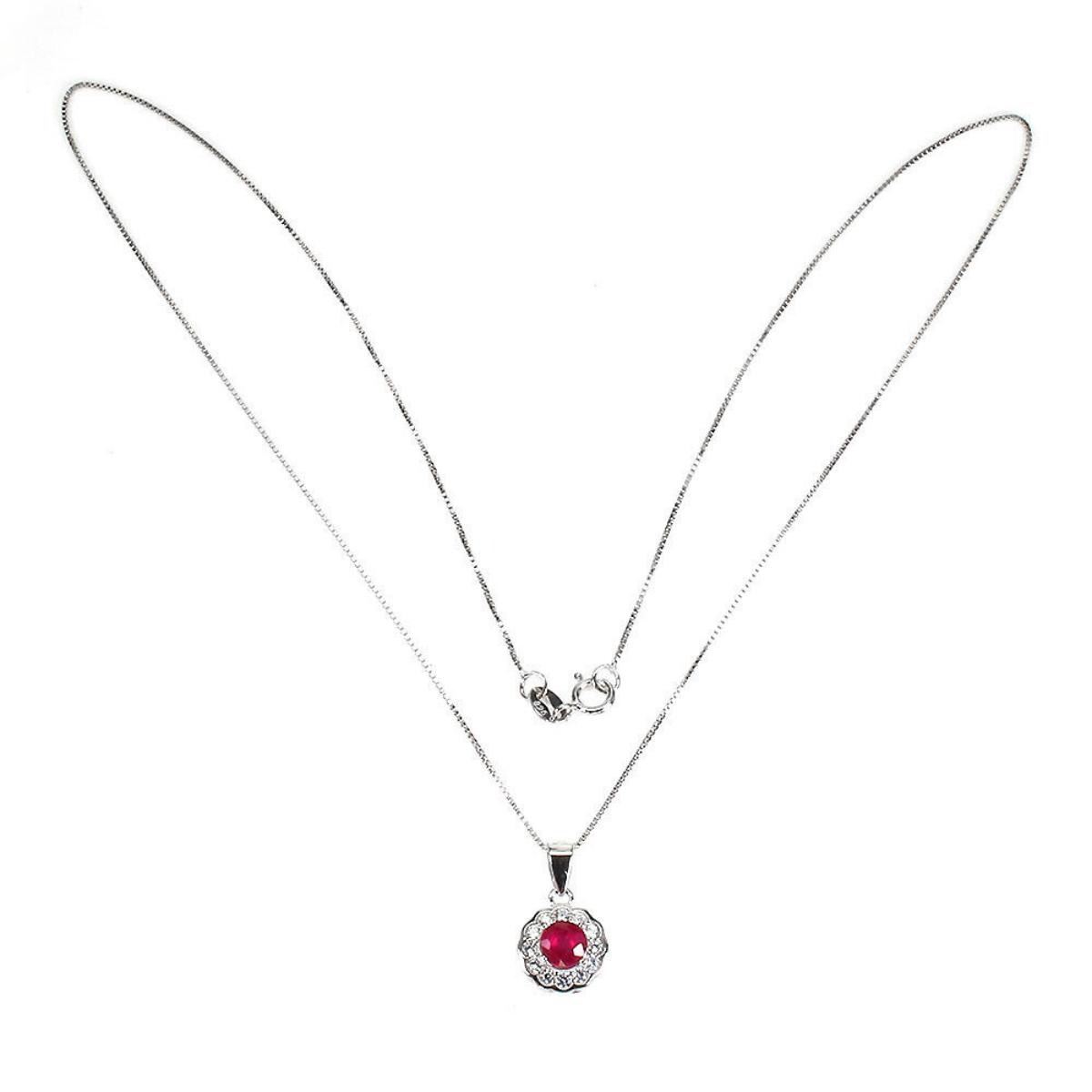 925 STERLING SILVER;PLATE-14K WHITE GOLD;LENGTH (INCHES)-18;MAIN STONE-RUBY;TOTAL WEIGHT-2.55 GRAM (TOTAL WEIGHT OF SILVER + STONE);DIMENSION-* STONE 5.0 MM.* TOTAL LENGTH 18.0 INCHES.* STONES PART LENGTH 17.0 X 10.0 MM.;MAIN STONE SHAPE-ROUND; MAIN STONE COLOR- PIGEON BLOOD RED;TREATMENT-YES;ORIGIN-MADAGASCAR;HARDNESS-9;