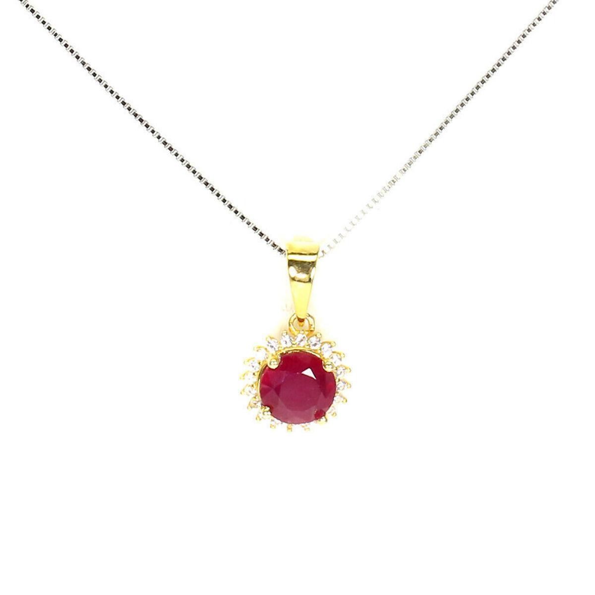 925 STERLING SILVER;PLATE-14K YELLOW GOLD;LENGTH (INCHES)-18;MAIN STONE-RUBY;OTHER GEMS-WHITE TOPAZ;TOTAL WEIGHT-2.3 GRAM (TOTAL WEIGHT OF SILVER + STONE);DIMENSION-* STONE 1.0 TO 7.0 MM.* TOTAL LENGTH 18.0 INCHES.* STONES PART LENGTH 17.0 X 10.0 MM.;MAIN STONE SHAPE-ROUND; MAIN STONE COLOR-PIGEON BLOOD RED ;TREATMENT-YES;ORIGIN-MOZAMBIQUE;HARDNESS-9.0;