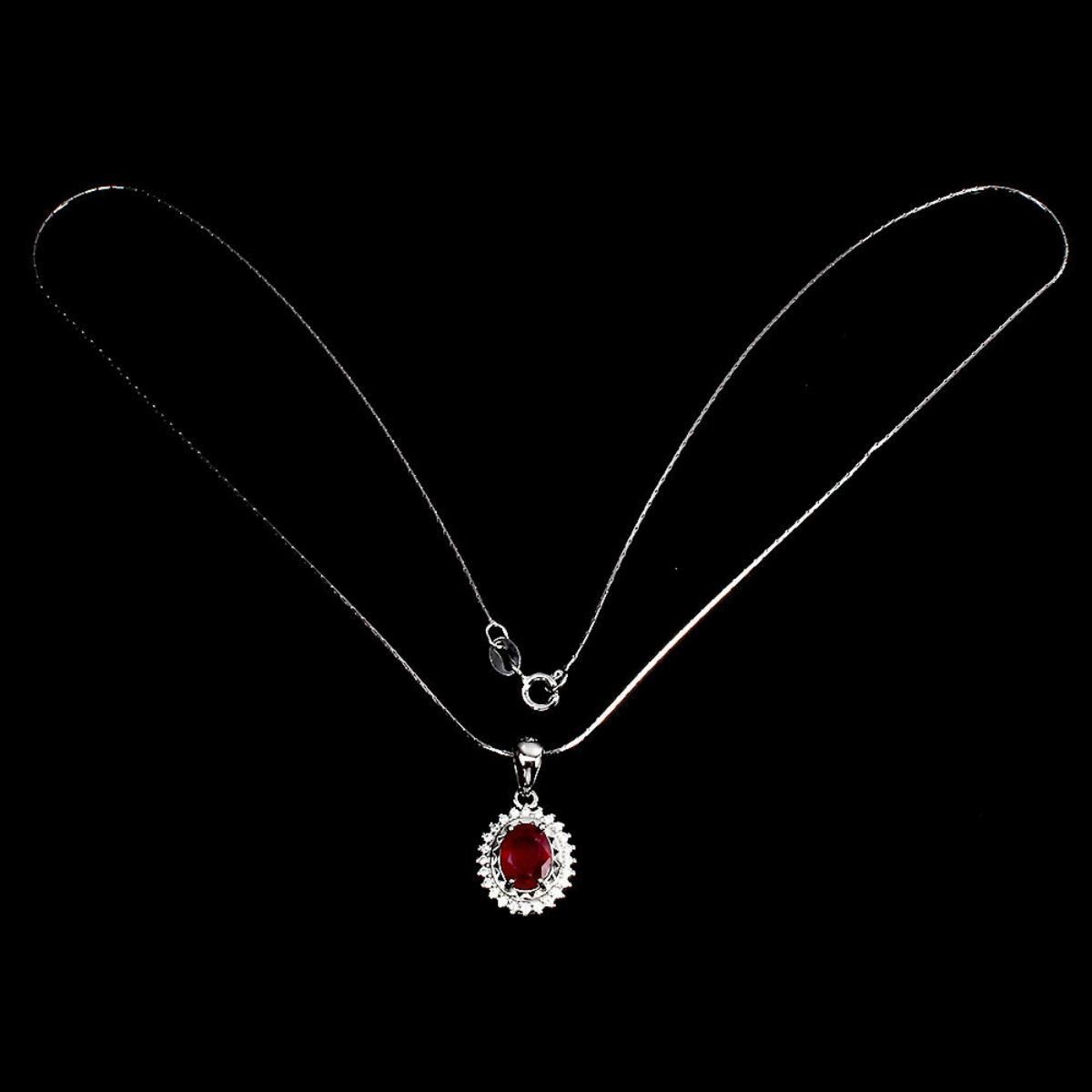 925 STERLING SILVER;PLATE-14K WHITE GOLD;LENGTH (INCHES)-18;MAIN STONE-RUBY;TOTAL WEIGHT-4 GRAM (TOTAL WEIGHT OF SILVER + STONE);DIMENSION-* STONE 8.0 X 6.0 MM.* TOTAL LENGTH 18.0 INCHES.* STONES PART LENGTH 22.0 X 12.0 MM.;MAIN STONE SHAPE-OVAL; MAIN STONE COLOR-PIGEON BLOOD RED;TREATMENT-YES;ORIGIN-MADAGASCAR;HARDNESS-9.0;