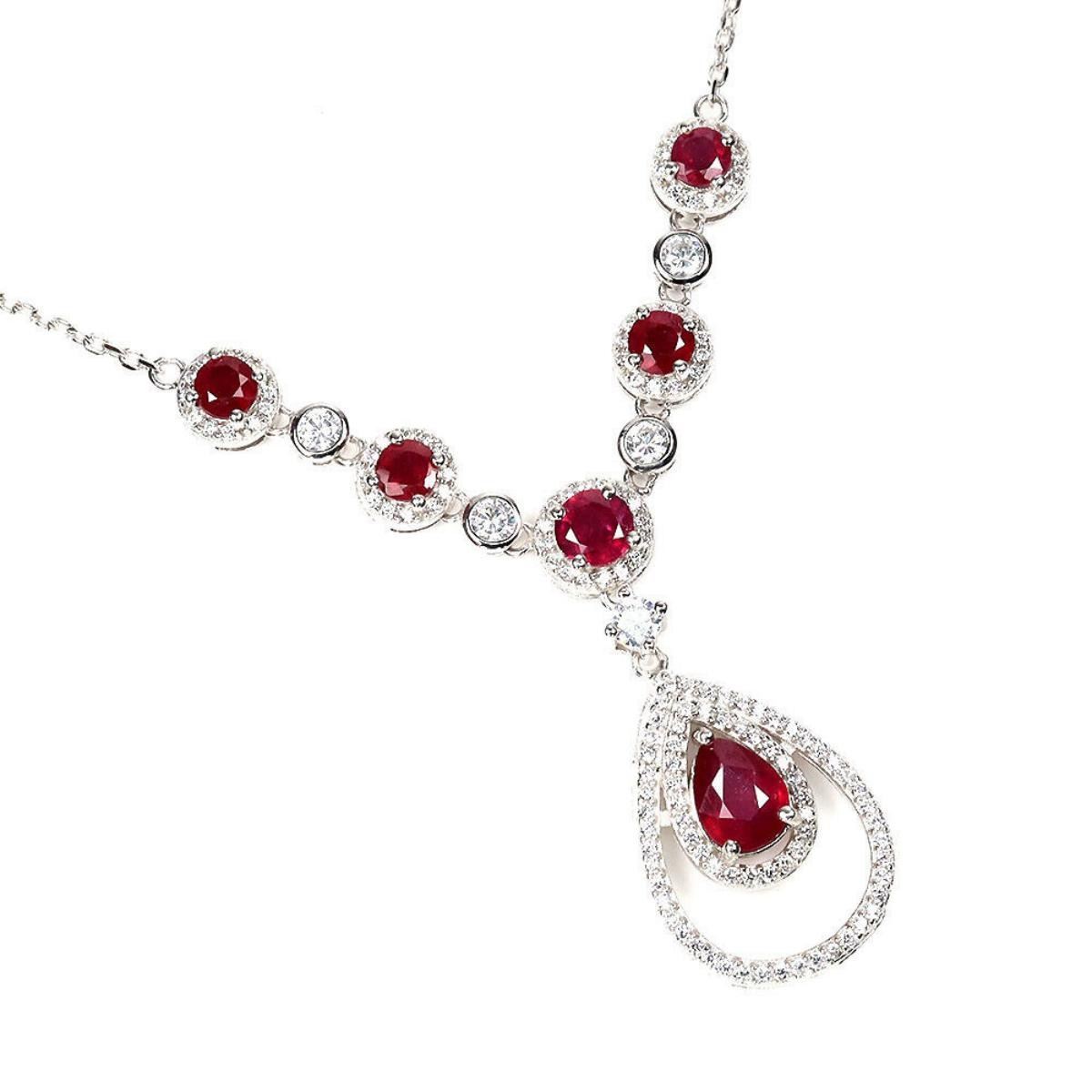 925 STERLING SILVER;PLATE-14K WHITE GOLD;LENGTH (INCHES)-17.5;MAIN STONE-RUBY;TOTAL WEIGHT-8.22 GRAM (TOTAL WEIGHT OF SILVER + STONE);DIMENSION-* STONE 4.0 TO 8.0 X 6.0 MM.* TOTAL LENGTH 17.5 INCHES.* STONES PART LENGTH 55.0 X 34.0 MM.;MAIN STONE SHAPE-PEAR ;MAIN STONE COLOR-PIGEON BLOOD RED;TREATMENT-YES;ORIGIN-MADAGASCAR;HARDNESS-9;
