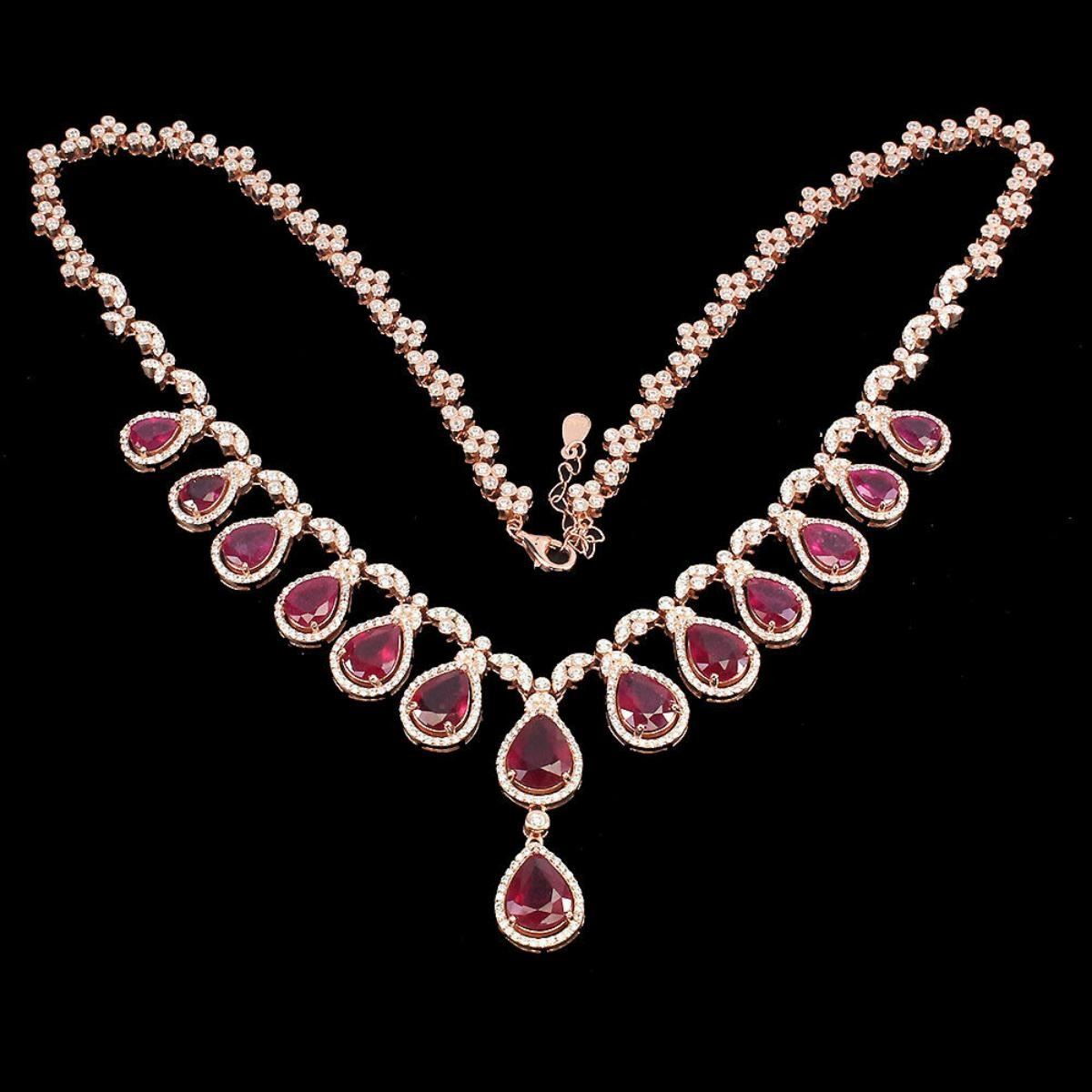 925 STERLING SILVER;PLATE-14K ROSE GOLD;LENGTH (INCHES)18;MAIN STONE-RUBY;TOTAL WEIGHT-40.75 GRAM (TOTAL WEIGHT OF SILVER + STONE)DIMENSION-* STONE 7.0 X 5.0 TO 10.0 X 8.0 MM.;* TOTAL LENGTH -18.0 INCHES.;* STONES PART LENGTH -435.0 X 35.0 MM.;MAIN STONE SHAPE-PEAR CUT;MAIN STONE COLOR-TOP BLOOD RED;TREATMENT-Yes;ORIGIN-MADAGASCAR;HARDNESS-9;