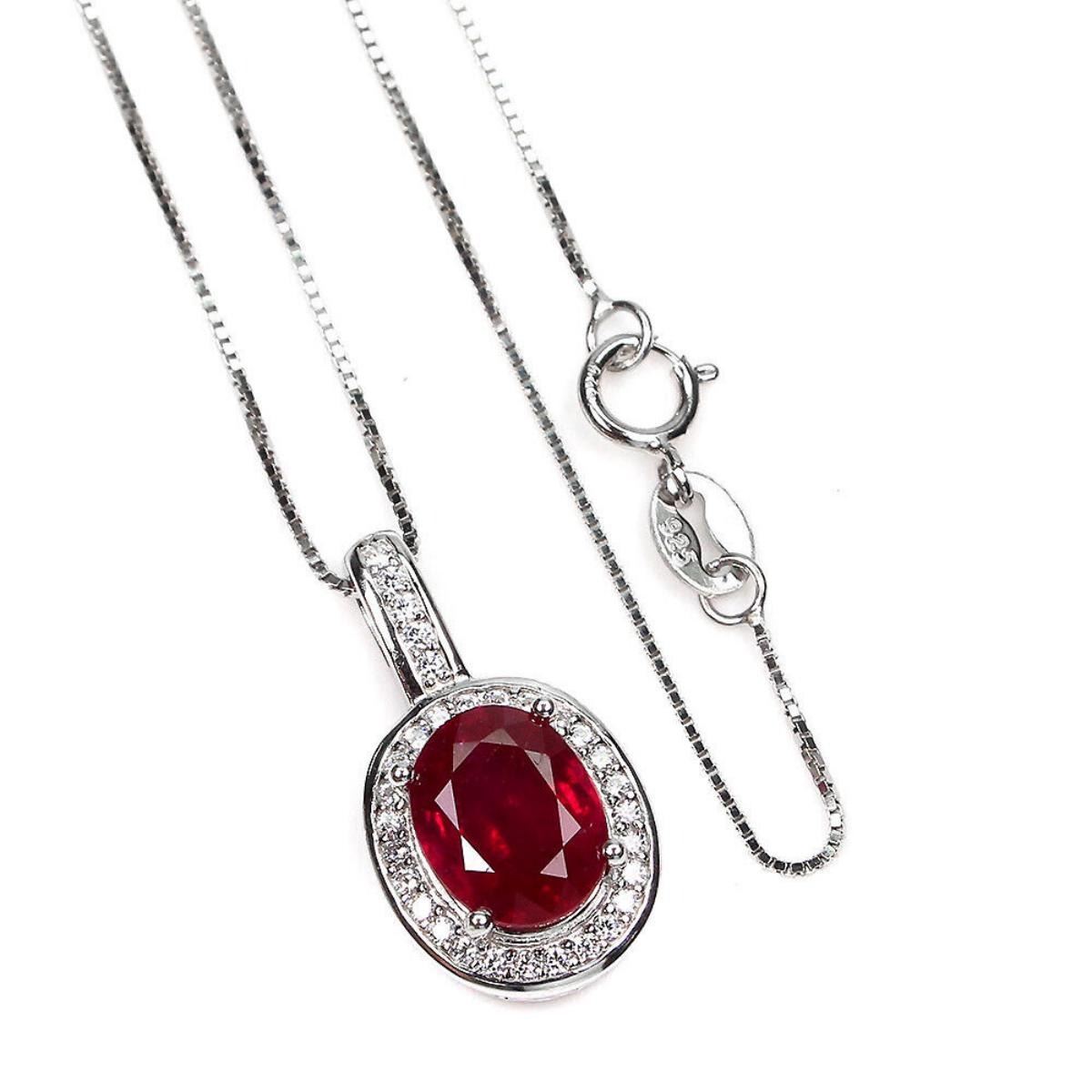 925 STERLING SILVER;PLATE-14K WHITE GOLD;LENGTH (INCHES)-18;MAIN STONE-RUBY;TOTAL WEIGHT-3.87 GRAM (TOTAL WEIGHT OF SILVER + STONE);DIMENSION-* STONE 9.0 X 7.0 MM.* TOTAL LENGTH 18.0 INCHES.* STONES PART LENGTH 20.0 X 11.0 MM.;MAIN STONE SHAPE-OVAL;MAIN STONE COLOR-PIGEON BLOOD RED;TREATMENT-YES;ORIGIN-MADAGASCAR;HARDNESS-9;