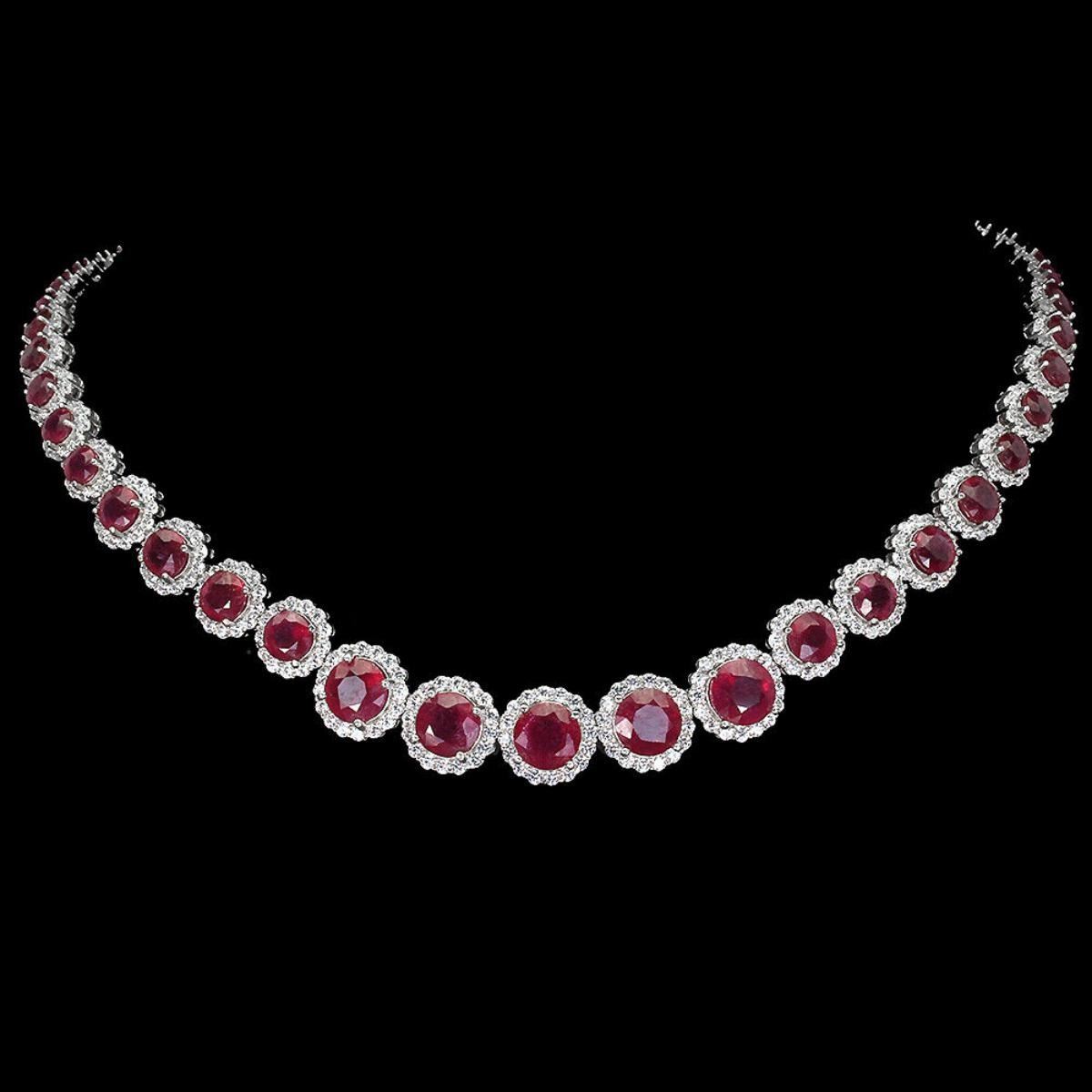 925 STERLING SILVER;PLATE-14K WHITE GOLD;LENGTH (INCHES)-18;MAIN STONE-RUBY;TOTAL WEIGHT-52.8 GRAM (TOTAL WEIGHT OF SILVER + STONE)DIMENSION-* STONE 3.5 TO 8.0 MM.;* TOTAL LENGTH- 18.0 INCHES.;* STONES PART LENGTH- 440.0 X 12.0 MM.;MAIN STONE SHAPE-ROUND CUT;MAIN STONE COLOR- BLOOD RED;TREATMENT-Yes;ORIGIN-MADAGASCAR;HARDNESS-9;