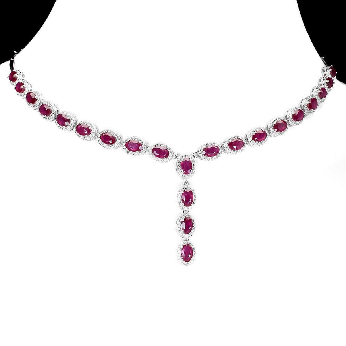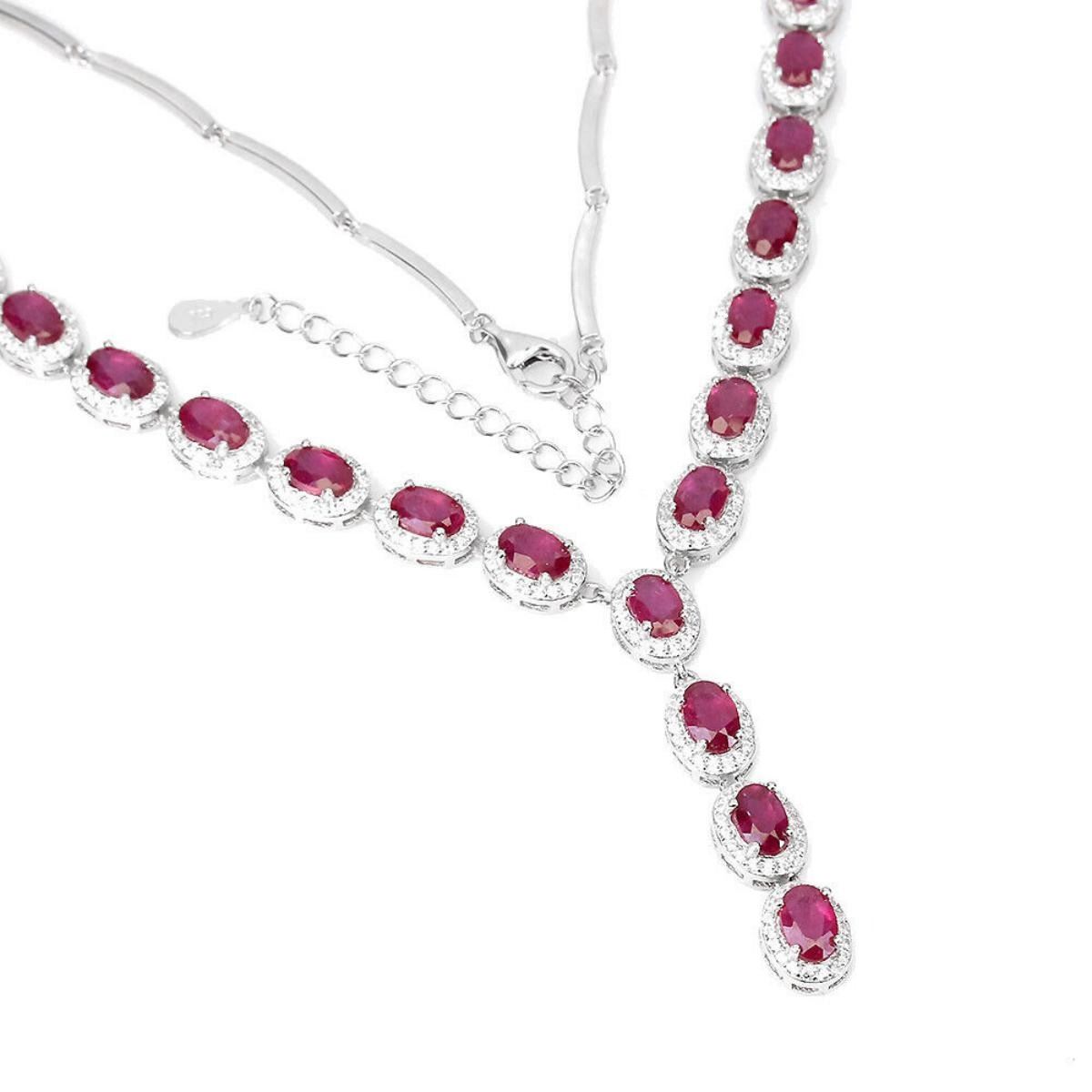925 STERLING SILVER;PLATE-14K WHITE GOLD;LENGTH (INCHES)-18;MAIN STONE-RUBY;TOTAL WEIGHT-19.16 GRAM (TOTAL WEIGHT OF SILVER + STONE);DIMENSION-* STONE 6.0 X 4.0 MM.* TOTAL LENGTH 18.0 INCHES.* STONES PART LENGTH 175.0 X 38.0 MM.;MAIN STONE SHAPE-OVAL ;MAIN STONE COLOR-PIGEON BLOOD RED;TREATMENT-YES;ORIGIN-MADAGASCAR;HARDNESS-9;