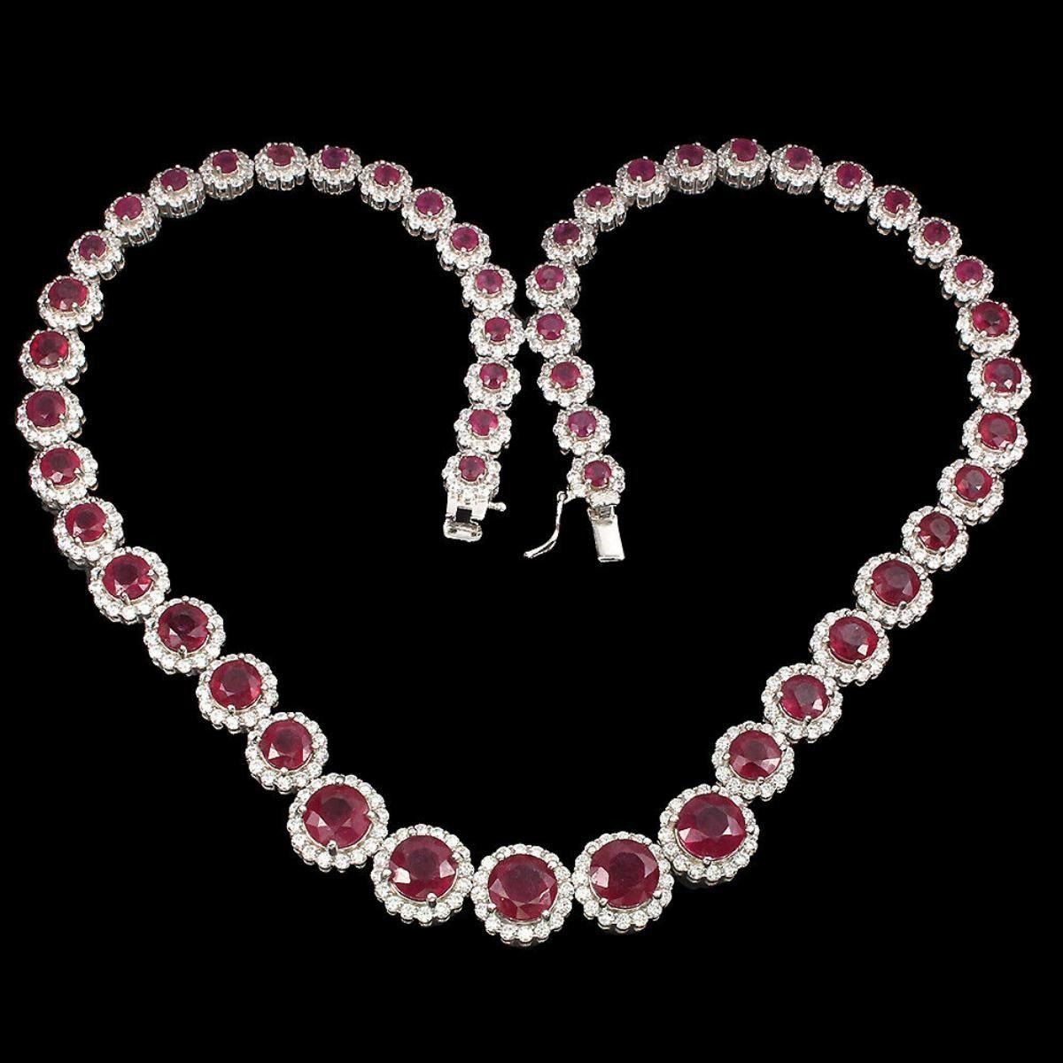 925 STERLING SILVER;PLATE-14K WHITE GOLD;LENGTH (INCHES)-18;MAIN STONE-RUBY;TOTAL WEIGHT-52.8 GRAM (TOTAL WEIGHT OF SILVER + STONE)DIMENSION-* STONE 3.5 TO 8.0 MM.;* TOTAL LENGTH- 18.0 INCHES.;* STONES PART LENGTH- 440.0 X 12.0 MM.;MAIN STONE SHAPE-ROUND CUT;MAIN STONE COLOR- BLOOD RED;TREATMENT-Yes;ORIGIN-MADAGASCAR;HARDNESS-9;