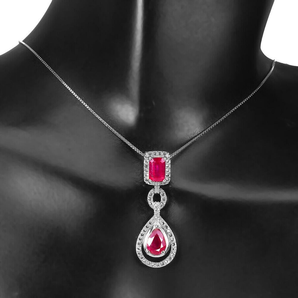 925 STERLING SILVER;PLATE-14K WHITE GOLD;LENGTH (INCHES)18;MAIN STONE-RUBY;OTHER GEMS-WHITE TOPAZ;TOTAL WEIGHT-3.58 GRAM (TOTAL WEIGHT OF SILVER + STONE)DIMENSION-* STONE 1.0 TO 7.0 X 5.0 MM.;* TOTAL LENGTH- 18.0 INCHES.;* STONES PART LENGTH- 30.0 X 10.0 MM.;MAIN STONE SHAPE-OCTAGON CUT;MAIN STONE COLOR-BLOOD RED;TREATMENT-- Yes;ORIGIN-MADAGASCAR;HARDNESS-9;
