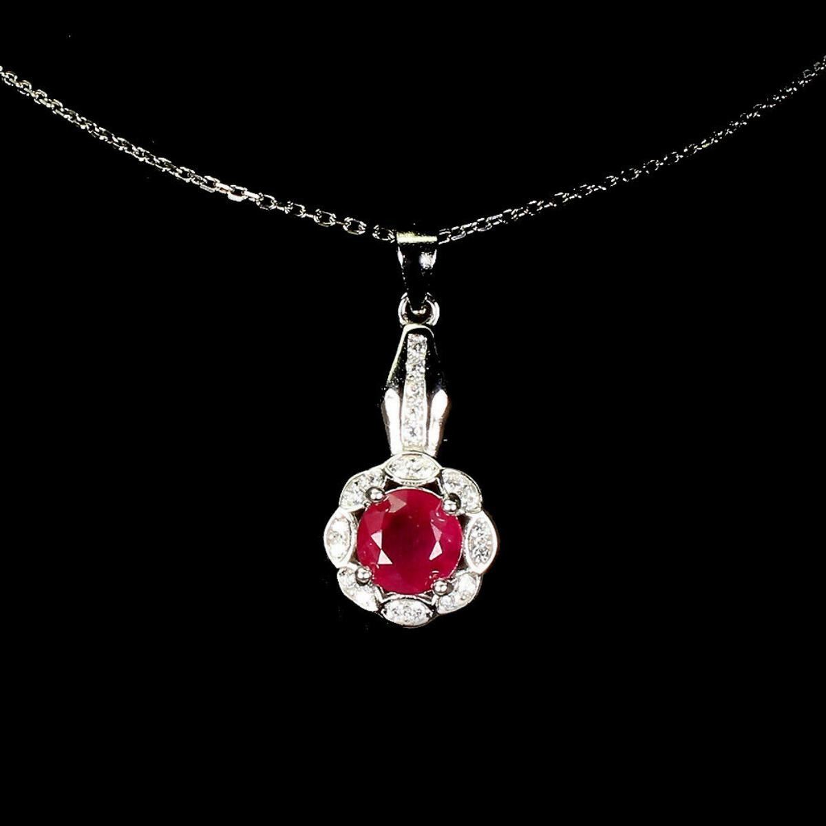 925 STERLING SILVER;PLATE-14K WHITE GOLD;LENGTH (INCHES)18;MAIN STONE-RUBY;TOTAL WEIGHT-2.76 GRAM (TOTAL WEIGHT OF SILVER + STONE)DIMENSION-* STONE 6.0 MM. * CZ 1.0 MM. * TOTAL LENGTH 18.0 INCHES.* STONES PART LENGTH 23.0 X 10.0 MM.;MAIN STONE SHAPE-ROUND CUT;MAIN STONE COLOR- BLOOD RED;TREATMENT--yes;ORIGIN-MADAGASCAR;HARDNESS-9.0;