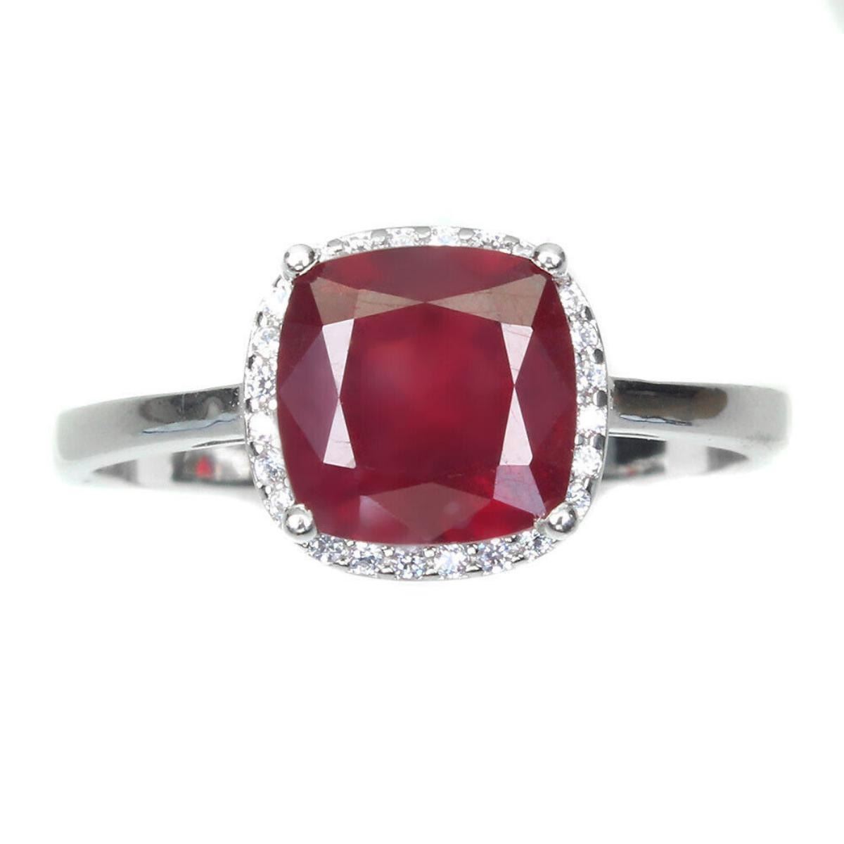 925 STERLING SILVER;PLATE-14K WHITE GOLD;RING SIZE/Resizeable-9.5;MAIN STONE-RUBY;TOTAL WEIGHT-2.94 GRAM (TOTAL WEIGHT OF SILVER + STONE)DIMENSION-* STONE 8.0 MM. * CZ 1.0 MM. * RING SIZE 9.5 * FACE RING- 10.0 X 10.0 MM.;MAIN STONE SHAPE-CUSHION CUT;MAIN STONE COLOR- BLOOD RED;TREATMENT-- Yes;ORIGIN-MADAGASCAR;HARDNESS-9;
