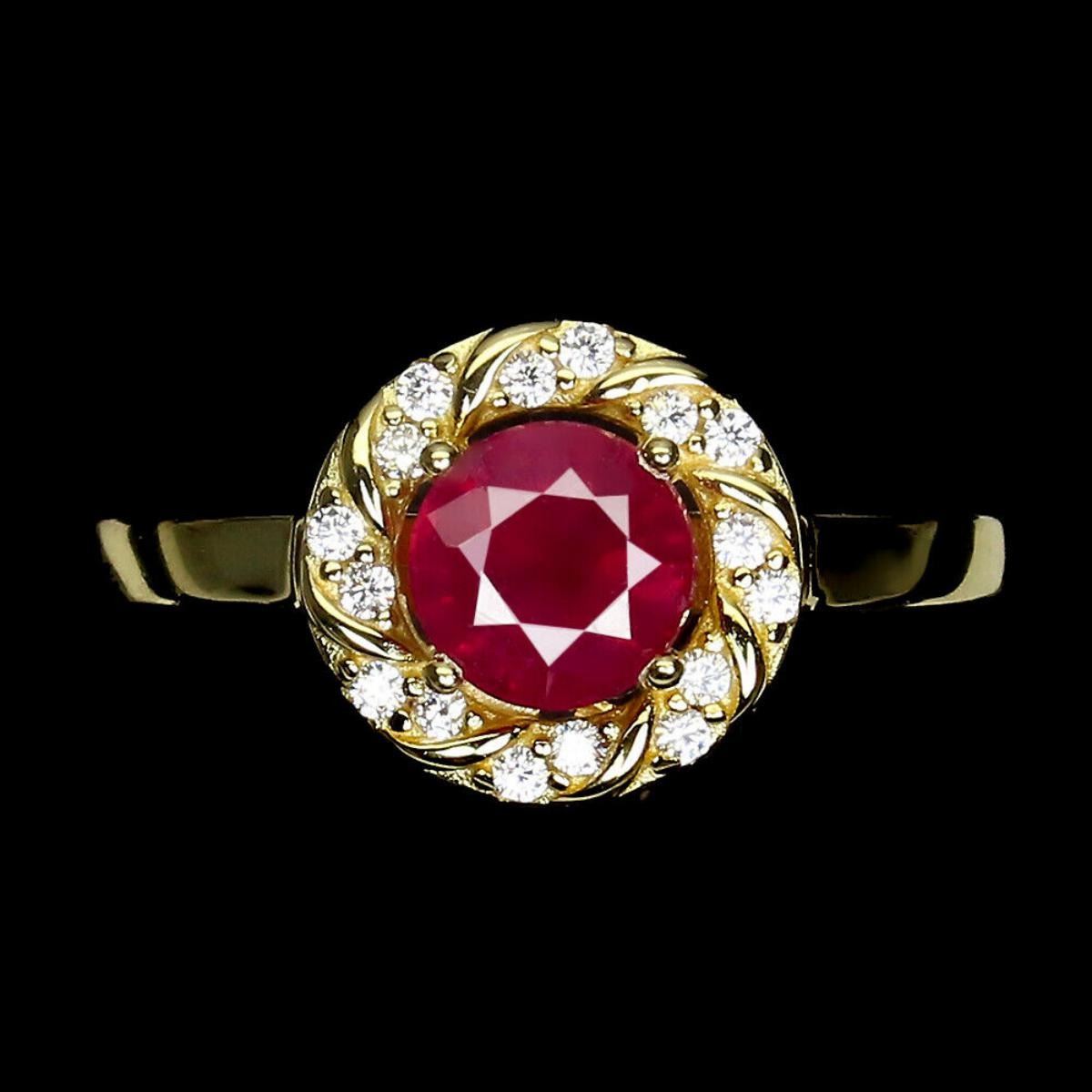 925 STERLING SILVE;PLATE-14K YELLOW GOLD;RING SIZE/resizable-7;MAIN STONE-RUBY;TOTAL WEIGHT-3.42 GRAM (TOTAL WEIGHT OF SILVER + STONE)DIMENSION-* STONE 6.0 MM.;* FACE RING- 10.0 X 10.0 MM.;MAIN STONE SHAPE-ROUND CUT;MAIN STONE COLOR-BLOOD RED;TREATMENT-Yes;ORIGIN-MADAGASCAR;HARDNESS-9.0;