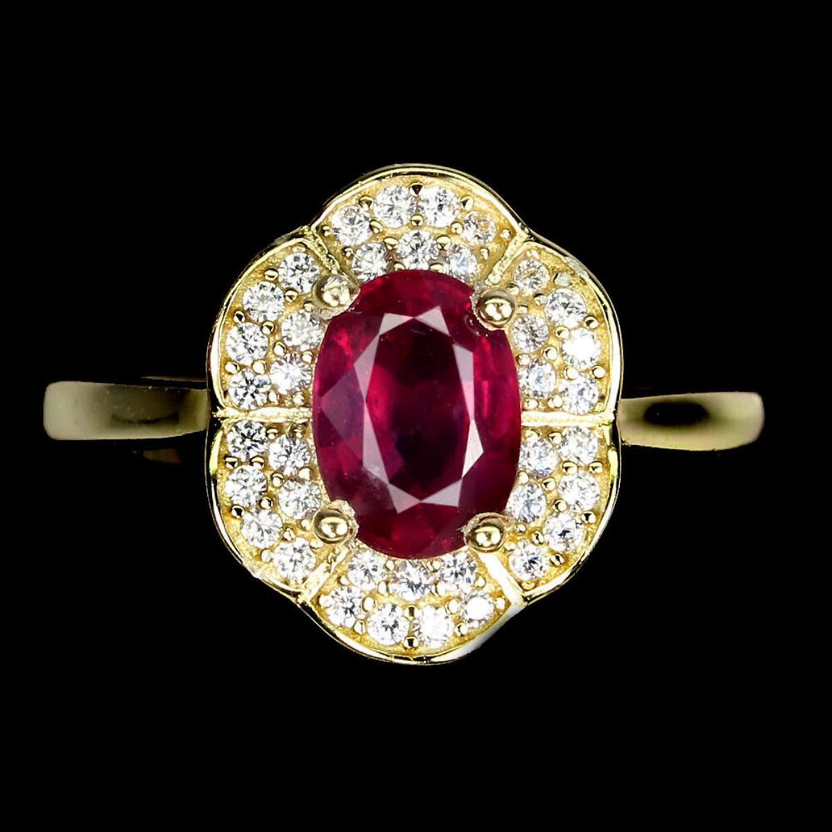 925 STERLING SILVER;PLATE-14K YELLOW GOLD;RING SIZE/resizable-7;MAIN STONE-RUBY;TOTAL WEIGHT-3.28 GRAM (TOTAL WEIGHT OF SILVER + STONE)DIMENSION-* STONE 7.0 X 5.0 MM.;* FACE RING- 12.0 X 10.0 MM.;MAIN STONE SHAPE-OVAL CUT;MAIN STONE COLOR- BLOOD RED;TREATMENT-Yes;ORIGIN-MADAGASCAR;HARDNESS-9.0;