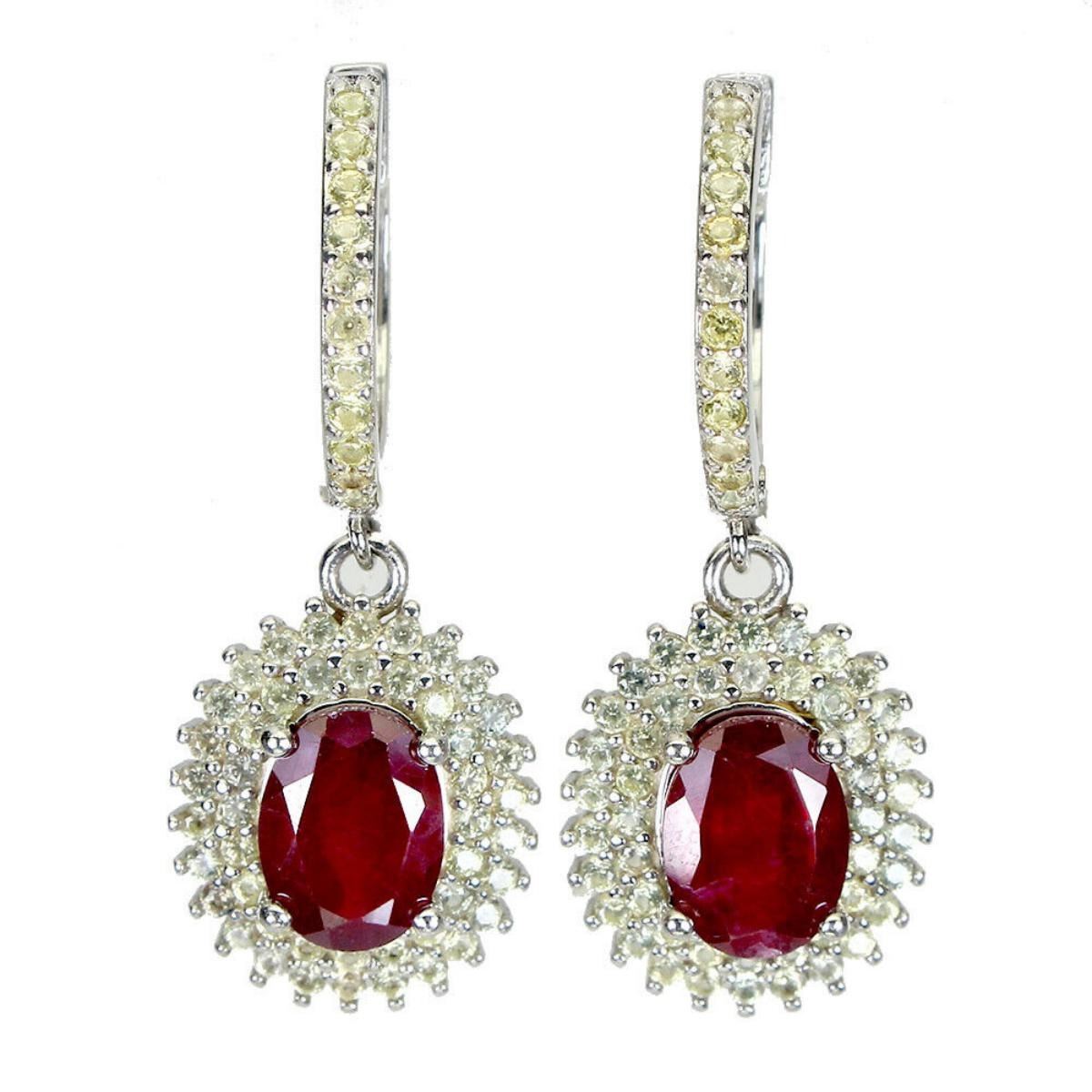925 STERLING SILVER;PLATE-14K WHITE GOLD;MAIN STONE-RUBY;OTHER GEMS-SAPPHIRE;TOTAL WEIGHT-5.03 GRAM (TOTAL WEIGHT OF SILVER + STONE);DIMENSION-* STONE 1.0 TO 8.0 X 6.0 MM.* FACE EARRINGS 28.0 X 12.0 MM.;MAIN STONE SHAPE-OVAL; MAIN STONE COLOR-PIGEON BLOOD RED;TREATMENT- YES;ORIGIN-MADAGASCAR;HARDNESS-9;