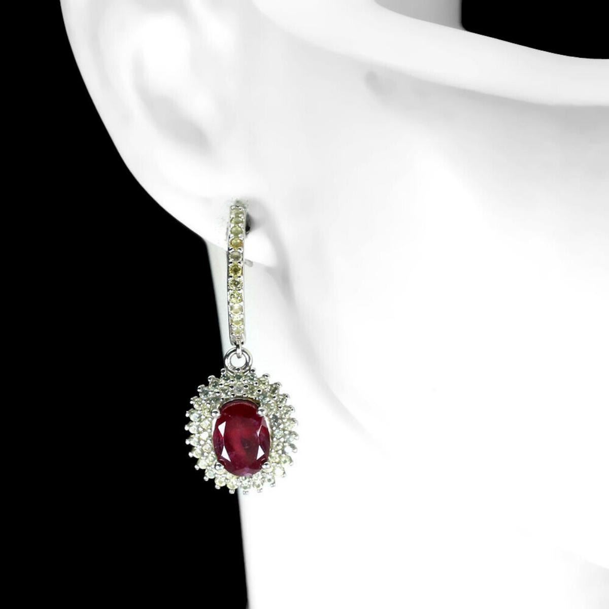 925 STERLING SILVER;PLATE-14K WHITE GOLD;MAIN STONE-RUBY;OTHER GEMS-SAPPHIRE;TOTAL WEIGHT-5.03 GRAM (TOTAL WEIGHT OF SILVER + STONE);DIMENSION-* STONE 1.0 TO 8.0 X 6.0 MM.* FACE EARRINGS 28.0 X 12.0 MM.;MAIN STONE SHAPE-OVAL; MAIN STONE COLOR-PIGEON BLOOD RED;TREATMENT- YES;ORIGIN-MADAGASCAR;HARDNESS-9;