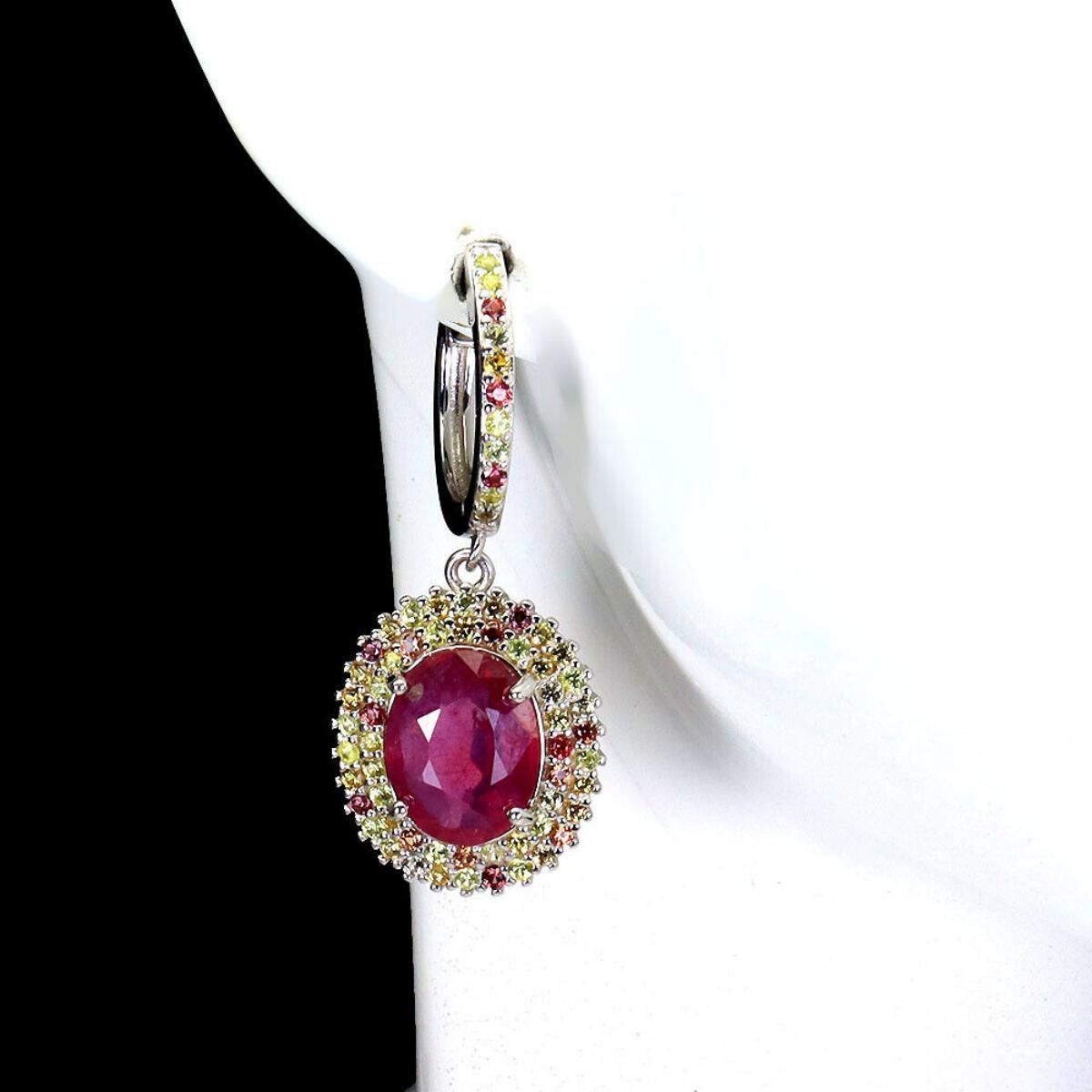 925 STERLING SILVER;PLATE-14K WHITE GOLD;MAIN STONE-RUBY;OTHER GEMS-SAPPHIRE ;TOTAL WEIGHT-7.13 GRAM (TOTAL WEIGHT OF SILVER + STONE)DIMENSION-* STONE 1.0 TO 10.0 X 8.0 MM. * FACE EARRINGS 32.0 X 14.0 MM.;MAIN STONE SHAPE-OVAL CUT;MAIN STONE COLOR- RED;TREATMENT-- Yes;ORIGIN-MADAGASCAR;HARDNESS-9;